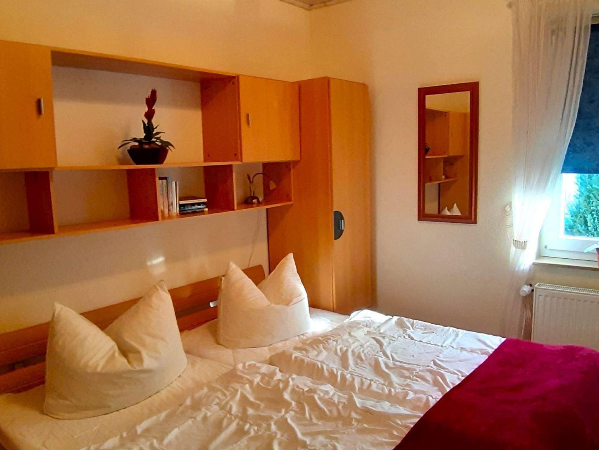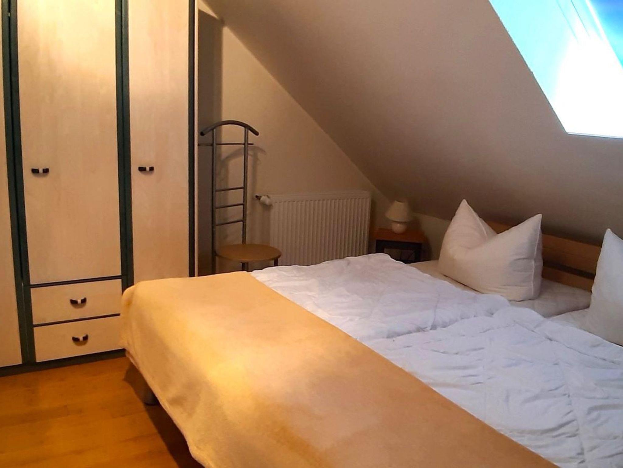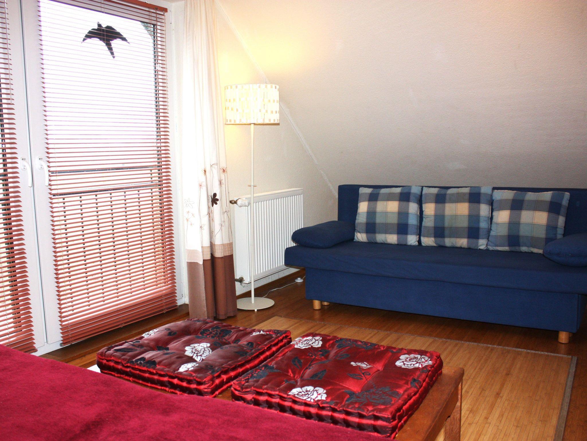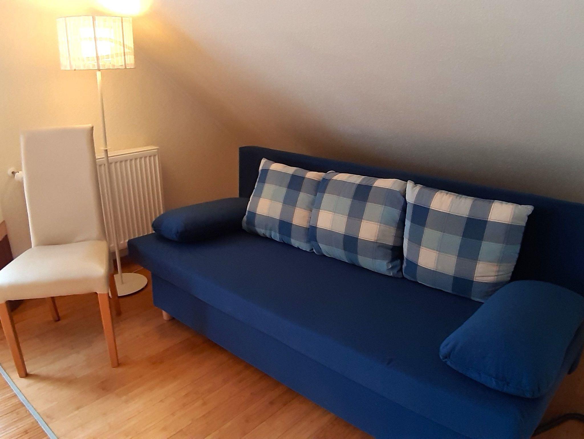 Im OG befinden sich 1 Schlafraum mit DB u. Kinderbett, 1 weiteres Schlafzimmer mit DB und Schlafsofa, sowie ein Bad.