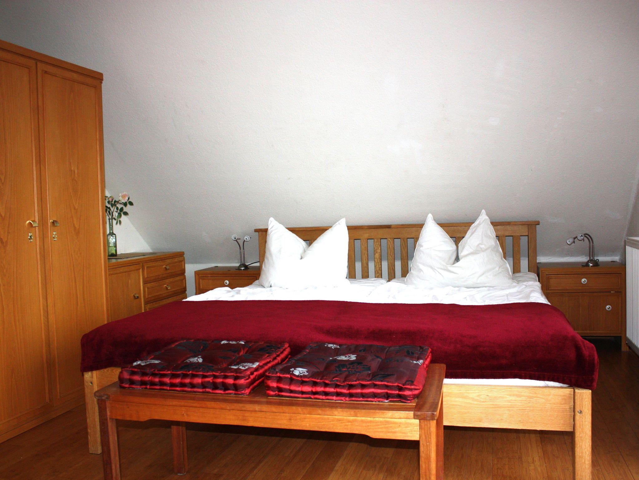 OG: 1 Schlafzimmer mit DB (1,80 x 2 m), Kinderbett (70 x 1,40 m) und Wickelauflage, 1 Schlafzimmer mit DB (1,80 x 2 m) und Schlafsofa (Liegefläche 1,40 m), Bad mit Dadewanne / Whirlpoolfunktion