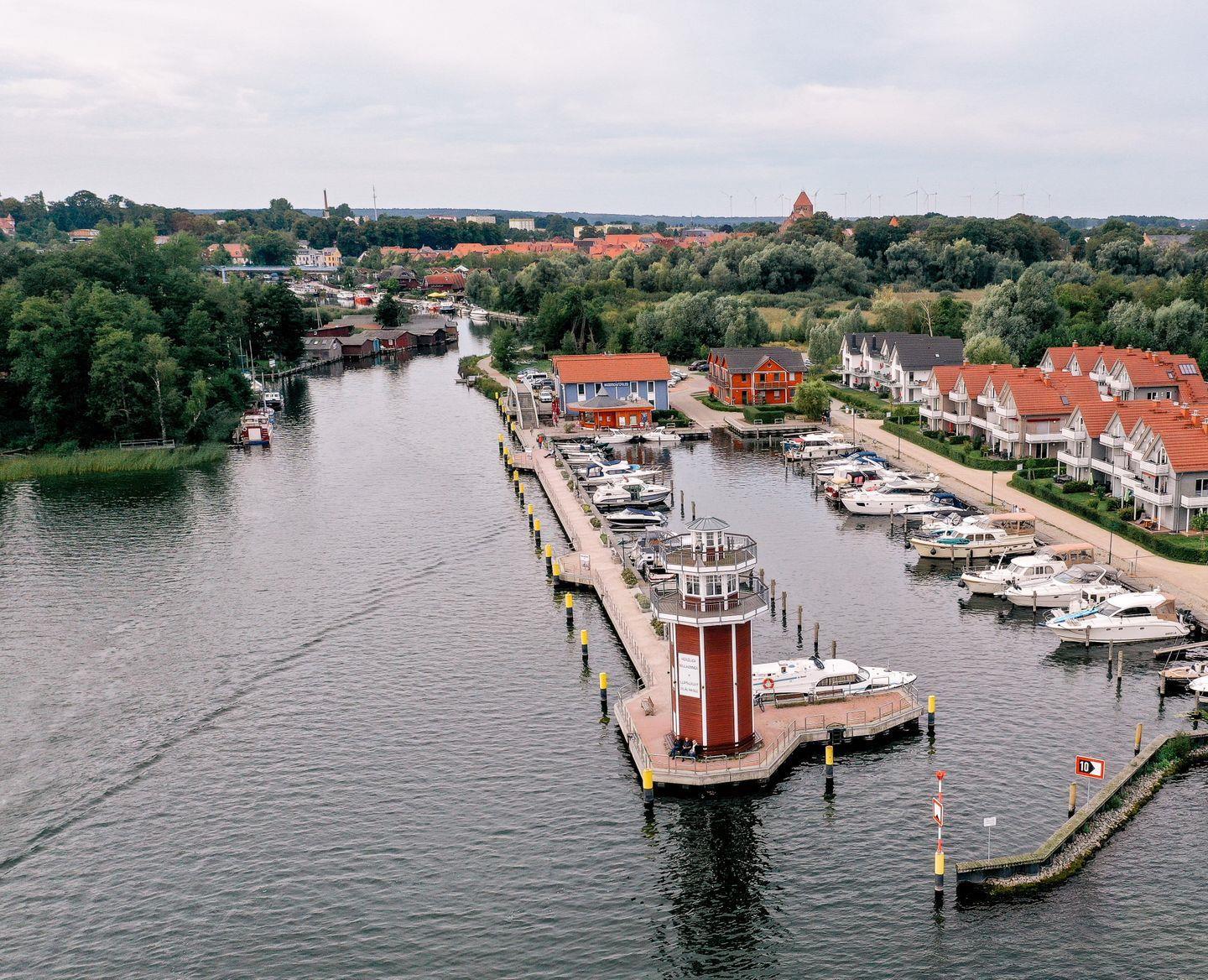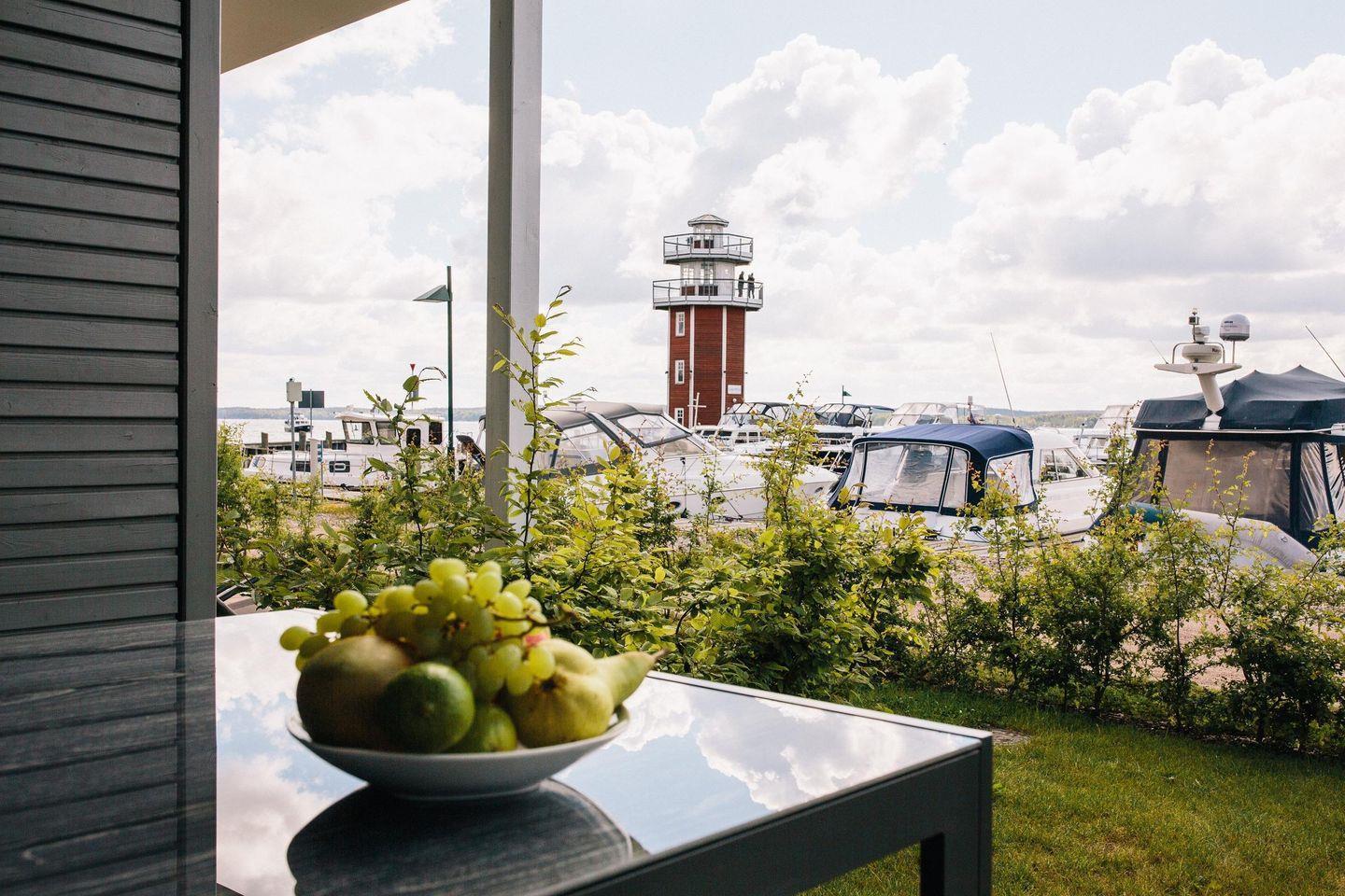 Der direkte Blick auf den Hafen und den dahinter liegenden See vermittelt ein maritimes Flair.
