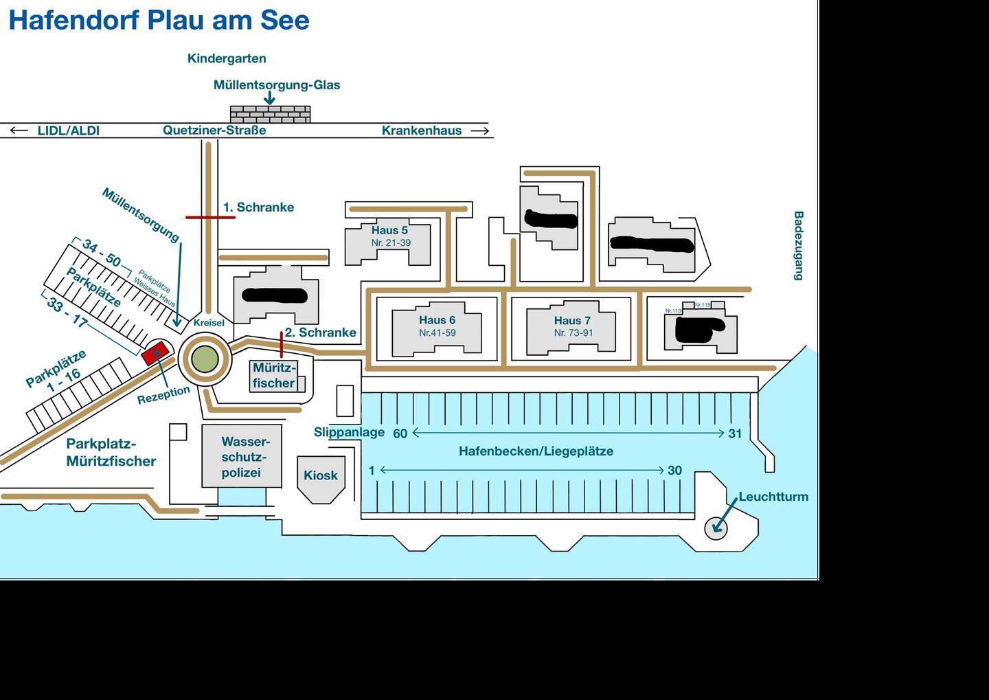 Das Hafendorf Plau am See ist verkehrsberuhigt. Ein Parkplatz steht in ca 150 Meter Entfernung zum Apartment zur Verfügung. Der Transport des Gepäcks kann mit eigens bereitstehenden Bollerwagen erfolgen.