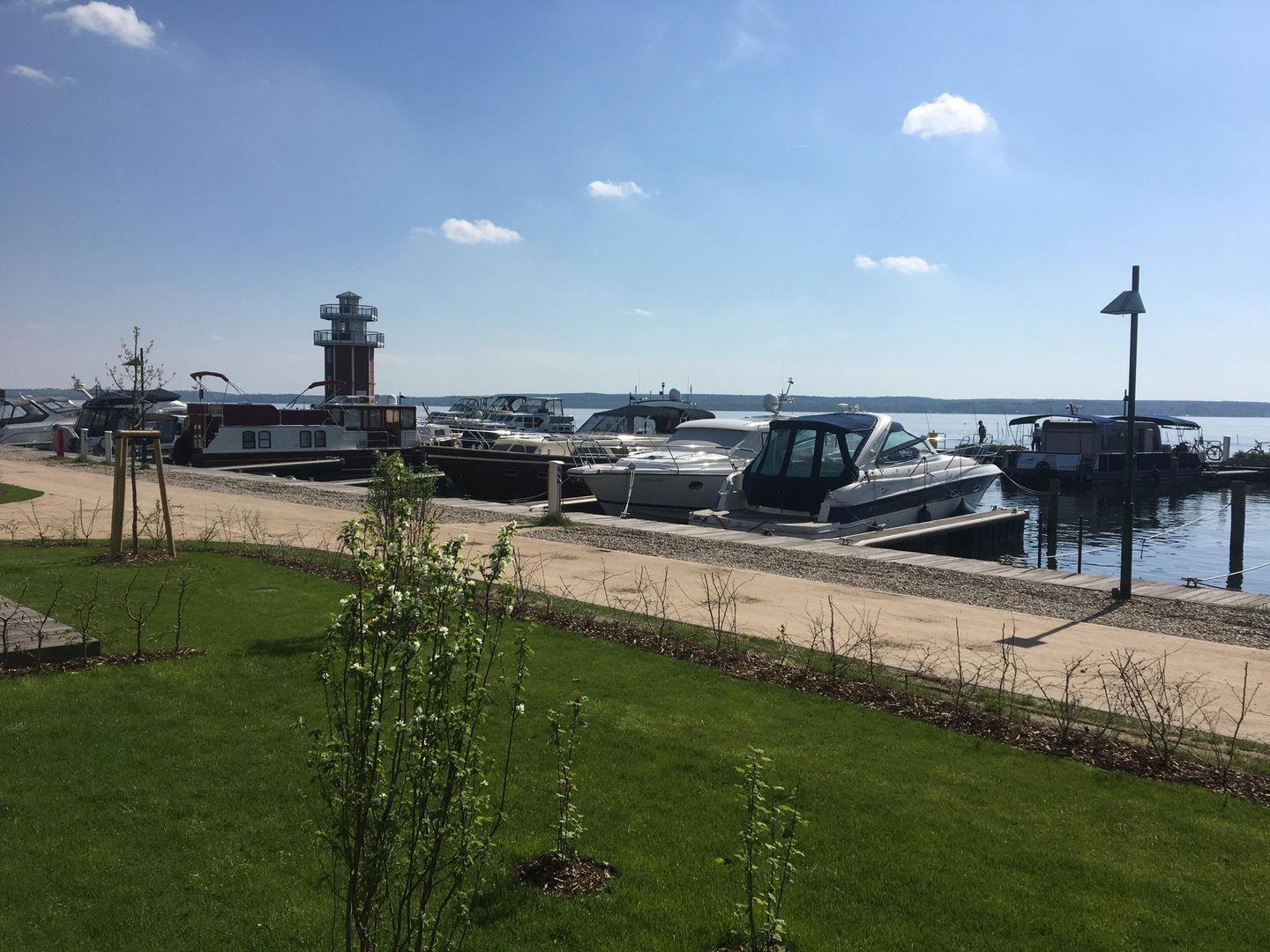 Der direkte Blick auf den Hafen und den dahinter liegenden See vermittelt Ihnen ein maritimes Flair.