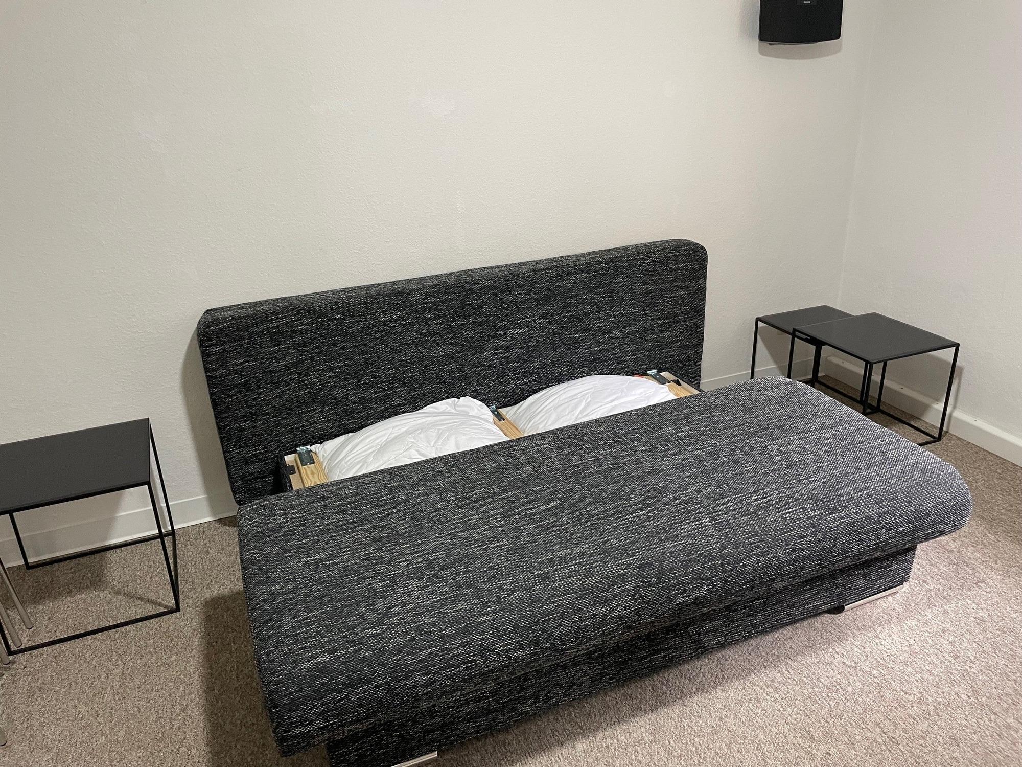 Die Liegefläche des Schlafsofas beträgt 186 x 183 cm mit einer Tragkraft von 380 kg, so dass hierauf bedenkenlos auch 3 Personen wie zum Beispiel Vater/Mutter/Kind liegen & schlafen könnten.