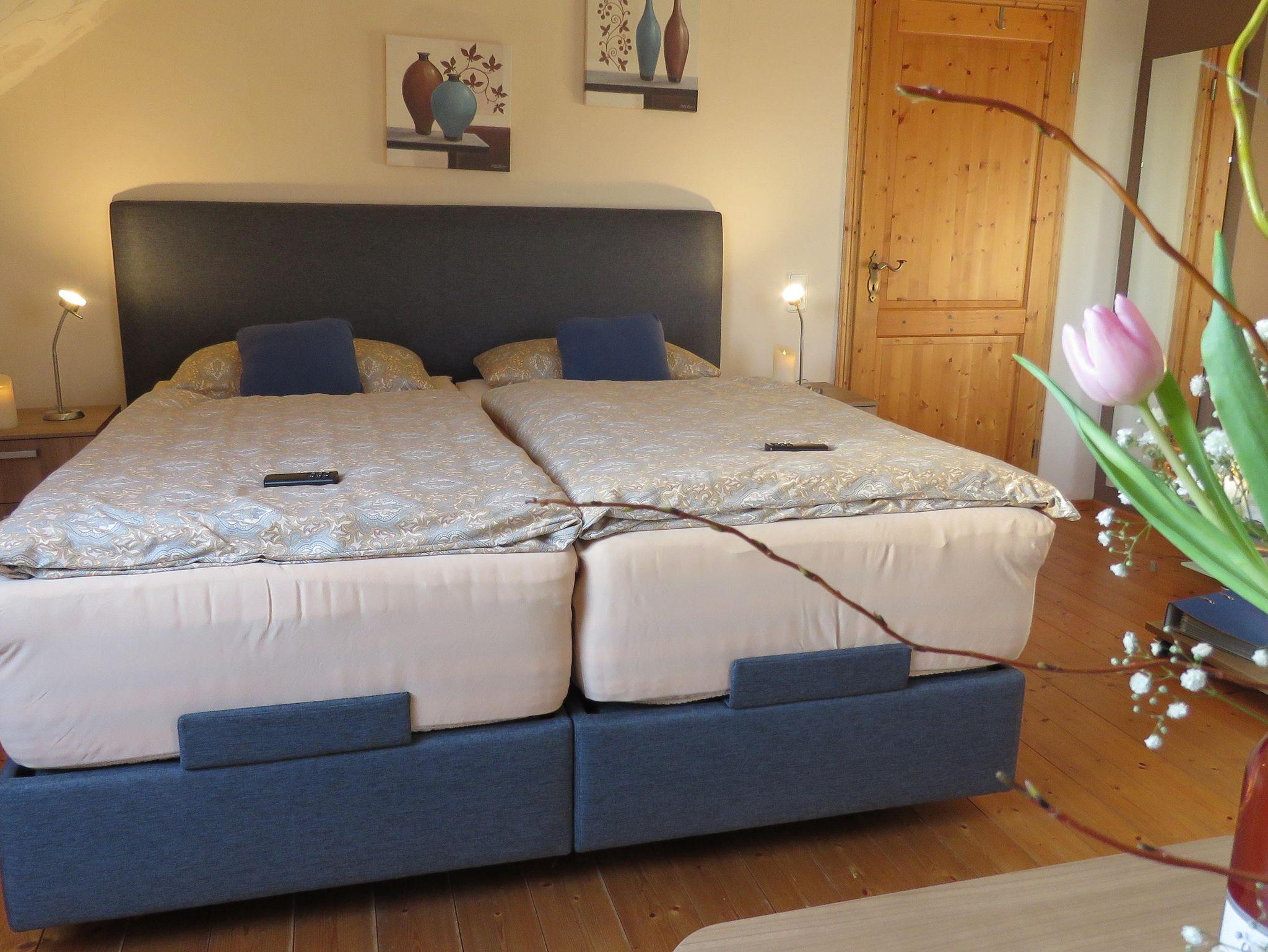 In der 3 Sterne Fewo Hortensie kann Ihr Tag in der Frühsonne mit einem Frühstück auf dem Balkon beginnen. Die Küche, von Spülmaschine bis Kaffeevollautomat und alles was sonst noch gebraucht wird, lässt Sie Ihren Urlaub viel entspannter verbringen. Traumhaft verbringen Sie die Nacht in dem elektisch verstellbarem Boxspringbett in Luxushöhe .
