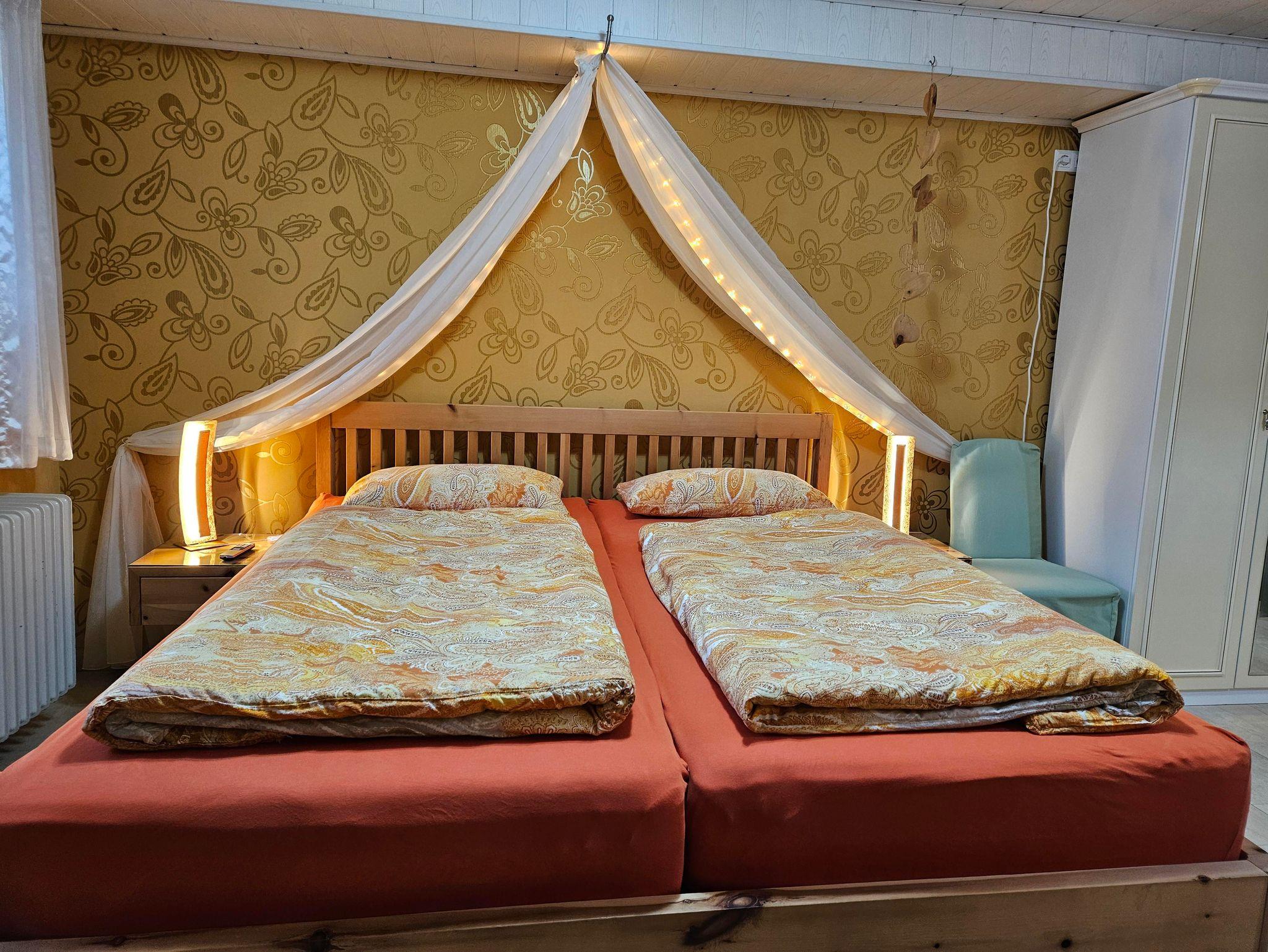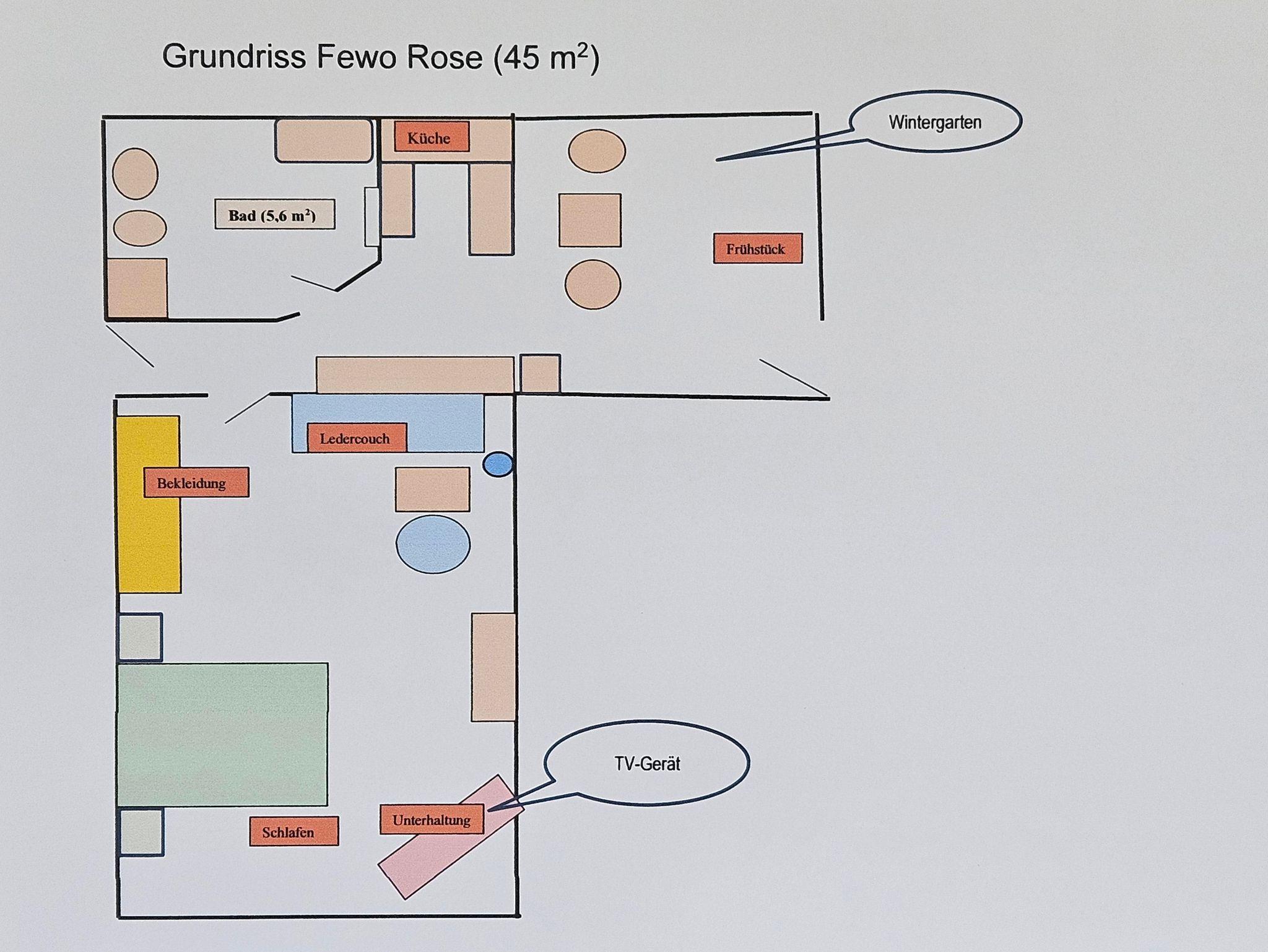 Die Ferienwohnung Rose ist ebenerdig und für 2 Personen geeignet. Sie hat einen separaten Eingang mit Parkplatz.