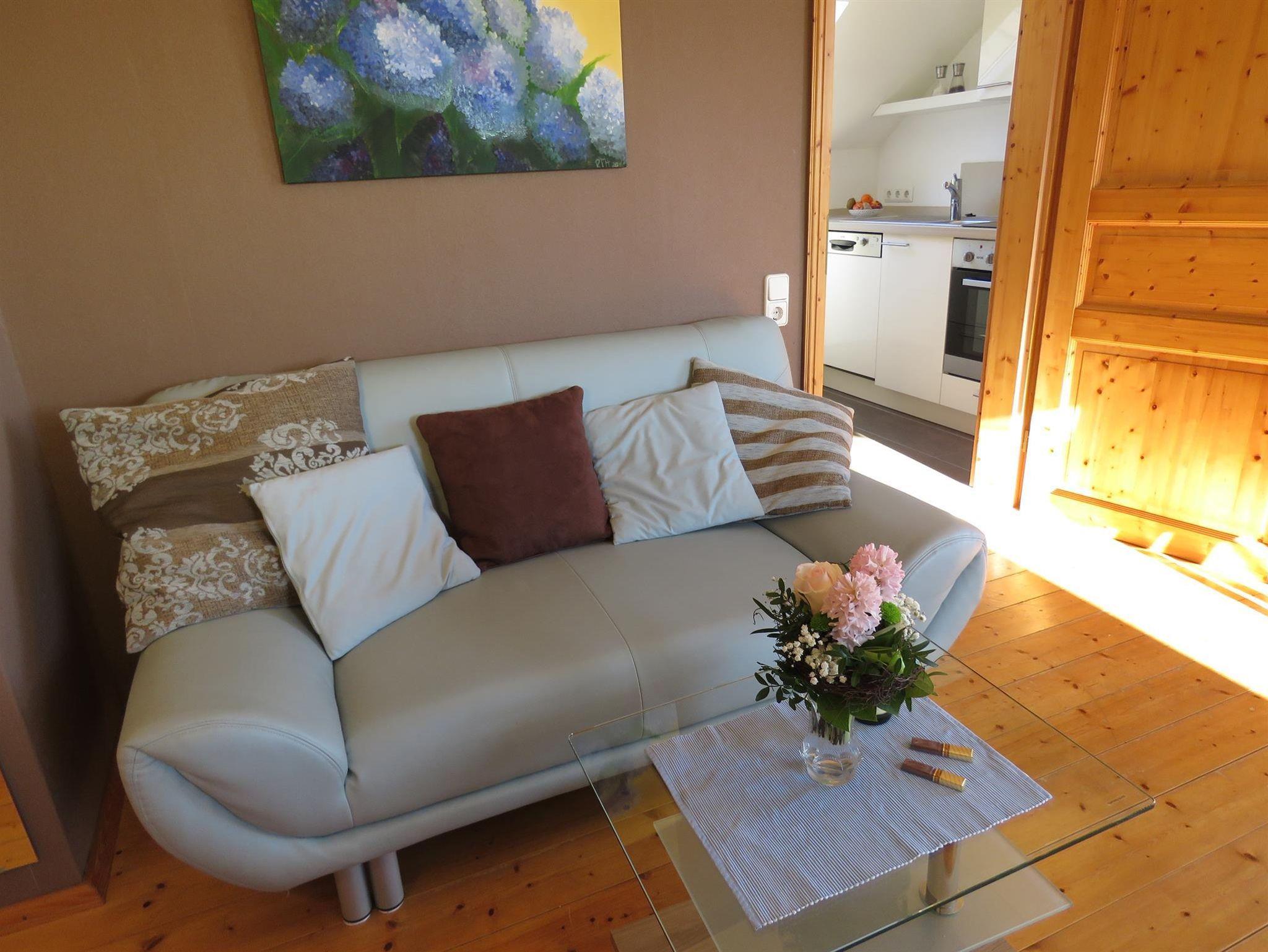 Die Fewo Hortensie ist ausgetattet mit einer Eßecke für 2-4 Personen. Einer Sitzecke, und ein elektrisch verstellbares Boxspringbett in einer Komforthöhe von 65cm.