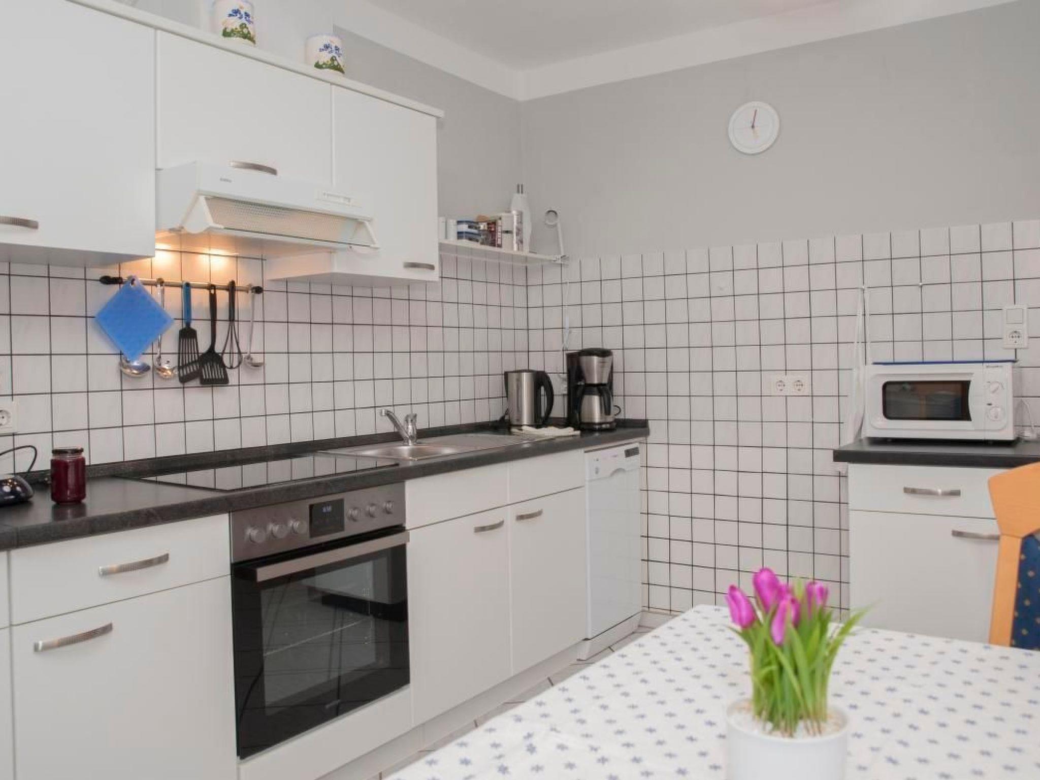 For your comfort, the interior of our flat is equipped with everything you need for a carefree stay. Relax in the living room in front of the flat-screen TV, enjoy your favourite music on our music system or sink into the reading corner, which is equipped with a selection of information material. The kitchen leaves nothing to be desired with its extensive equipment. The bathroom offers a walk-in shower and a spacious washbasin for your convenience. Sleep heavenly in our bedrooms - one with a 2 x 2 metre bed, the other with a single bed and a pull-out armchair with slatted frame.
