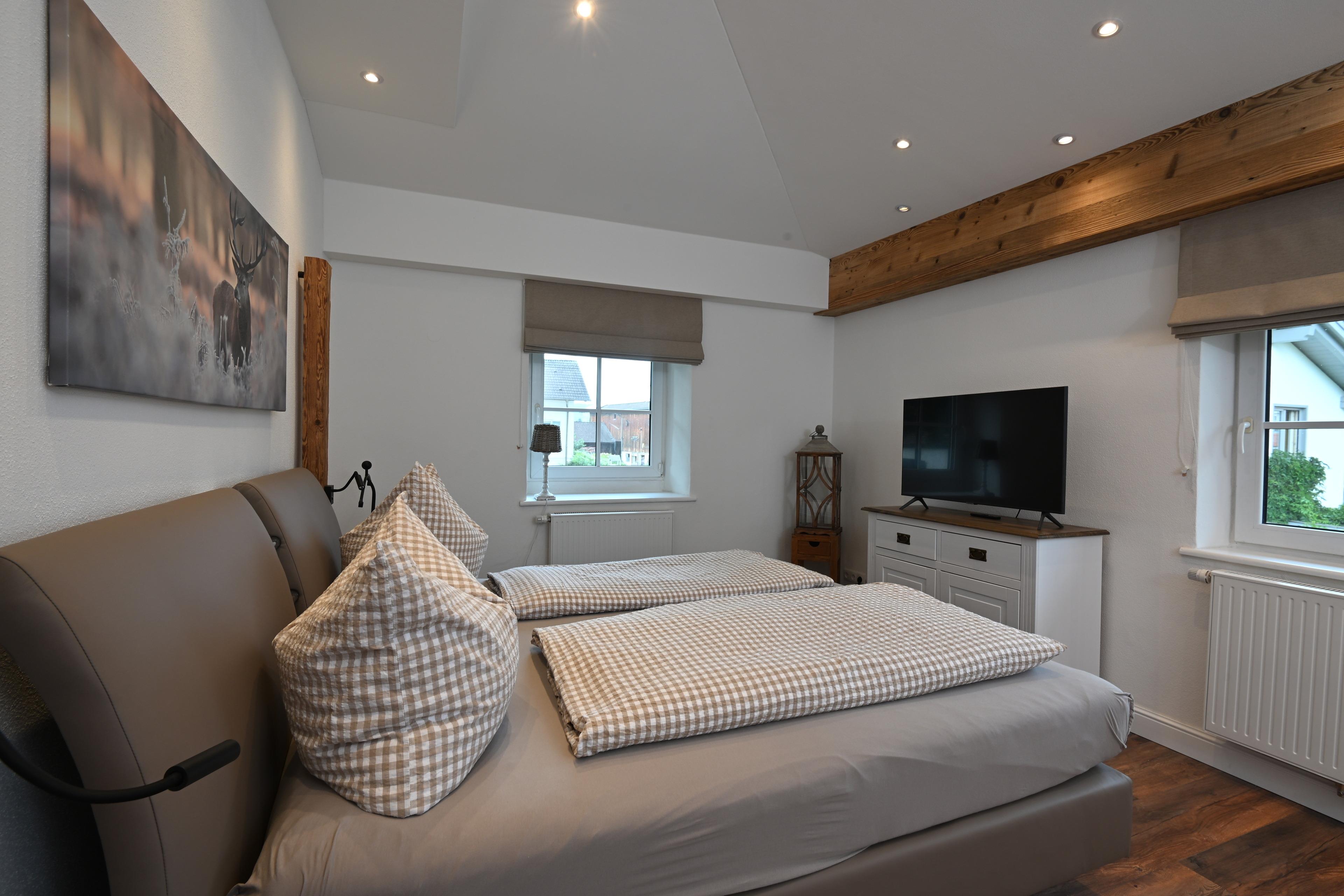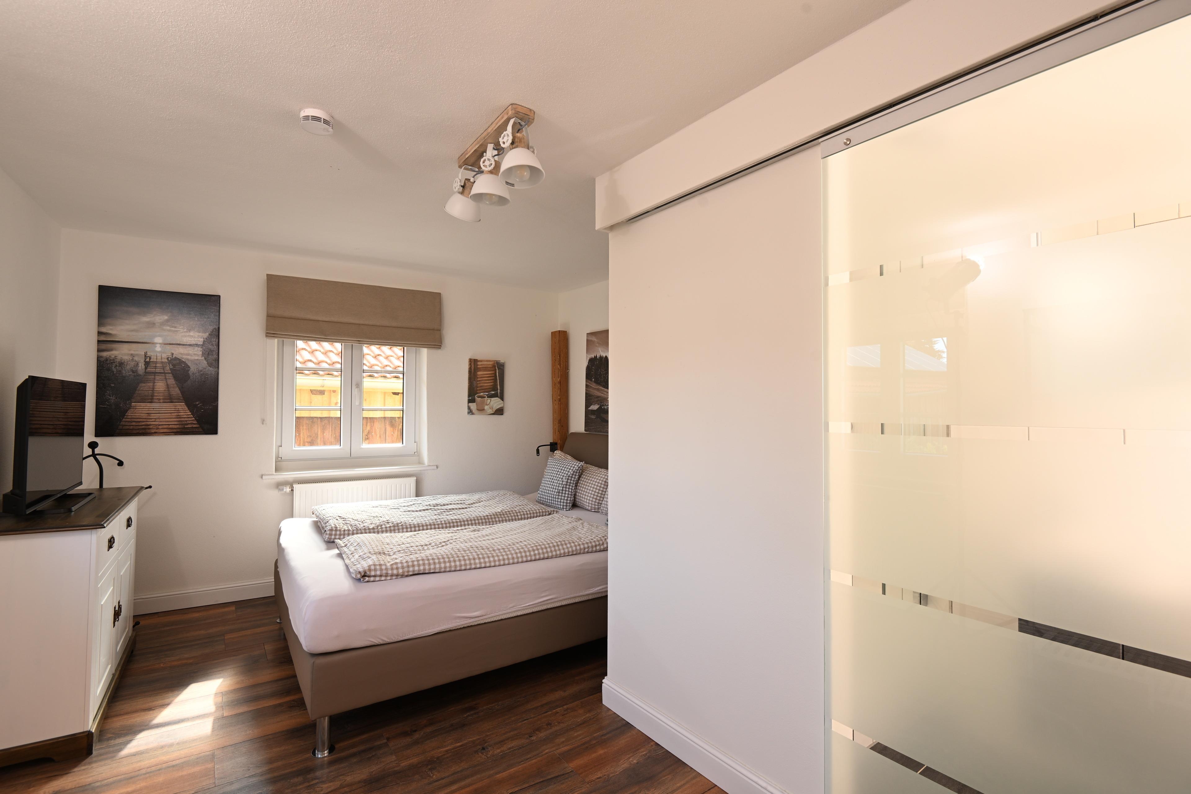 Die Wohnung ist durch die Größe ideal um am Abend oder bei schlechtem Wetter eine schöne Zeit mit Freunden und Familie zu verbringen, gemeinsam an der Kochinsel zu kochen, am großen Eßtisch Spiele zu spielen, sich dann aber auch mal zurück zu ziehen um gemütlich den Lieblingsfilm im Bett zu schauen. Neben dem Fernseher im Wohnraum befindet sich in jedem Schlafzimmer ein Fernseher, insgesamt sind es 3 Fernseher. Das Programm läuft über Waipu. WLAN ist natürlich vorhanden. Die Wohnung hat 2 Duschbäder, eins davon ist ein kleines Bad en Suite in dem kleineren Schlafzimmer, das andere Bad liegt angrenzend am großen Wohnraum und hat eine großzügige Größe. Beide Schlafzimmer haben ein Doppelbett - einmal 180er Breite und einmal 160er Breite. Angrenzend am Eingangsbereich befindet sich eine große Diele für Ihre Schuhe und Kleidung und Unterbringung der Koffer. Zwischen den 2 Schlafzimmern befindet sich eine kleine Teeküche mit Spüle, und Mikrowelle. In der großen Küche gibt es von Tchibo einen Kaffeevollautomat.