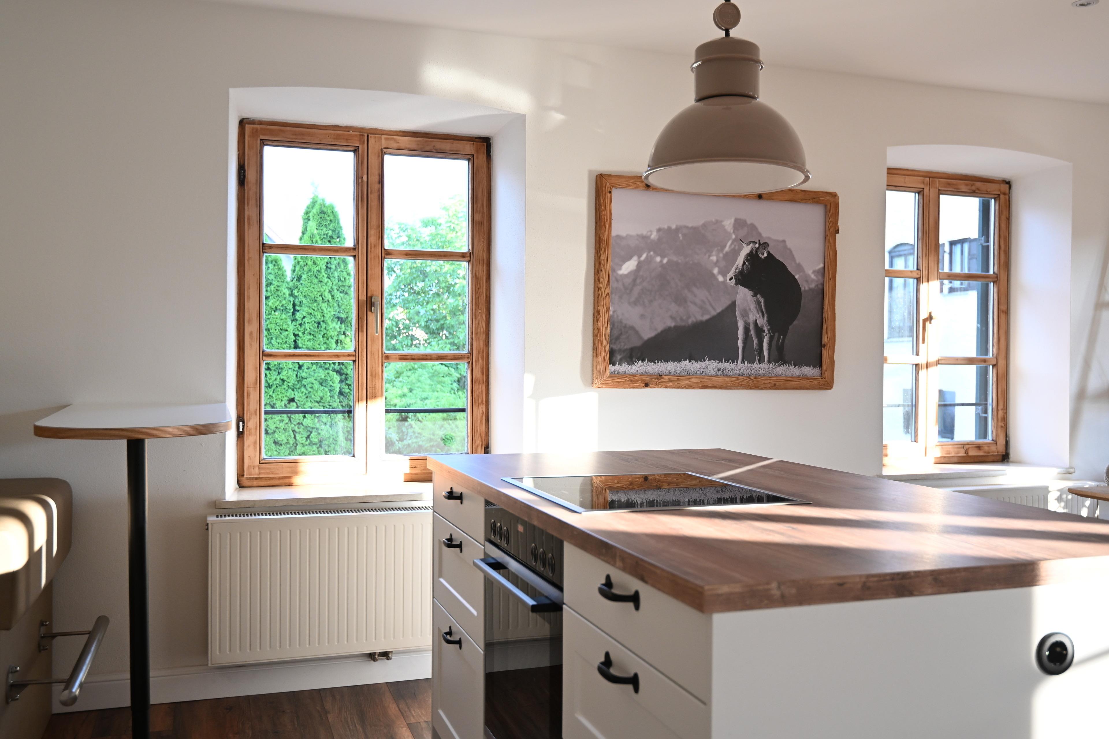 Die Wohnung liegt zentral im alten Ortskern vom idyllischen Klosterdorf Polling. Fußläufig sind sowohl der gut ausgestattete Edeka als auch 2 sehr gute Restaurants und Biergarten erreichbar. In 4 Kilometer Entfernung ist die Kreisstadt Weilheim mit einer Vielzahl an Geschäften, Cafes und Restaurants und einer schönen kleinen Altstadt.