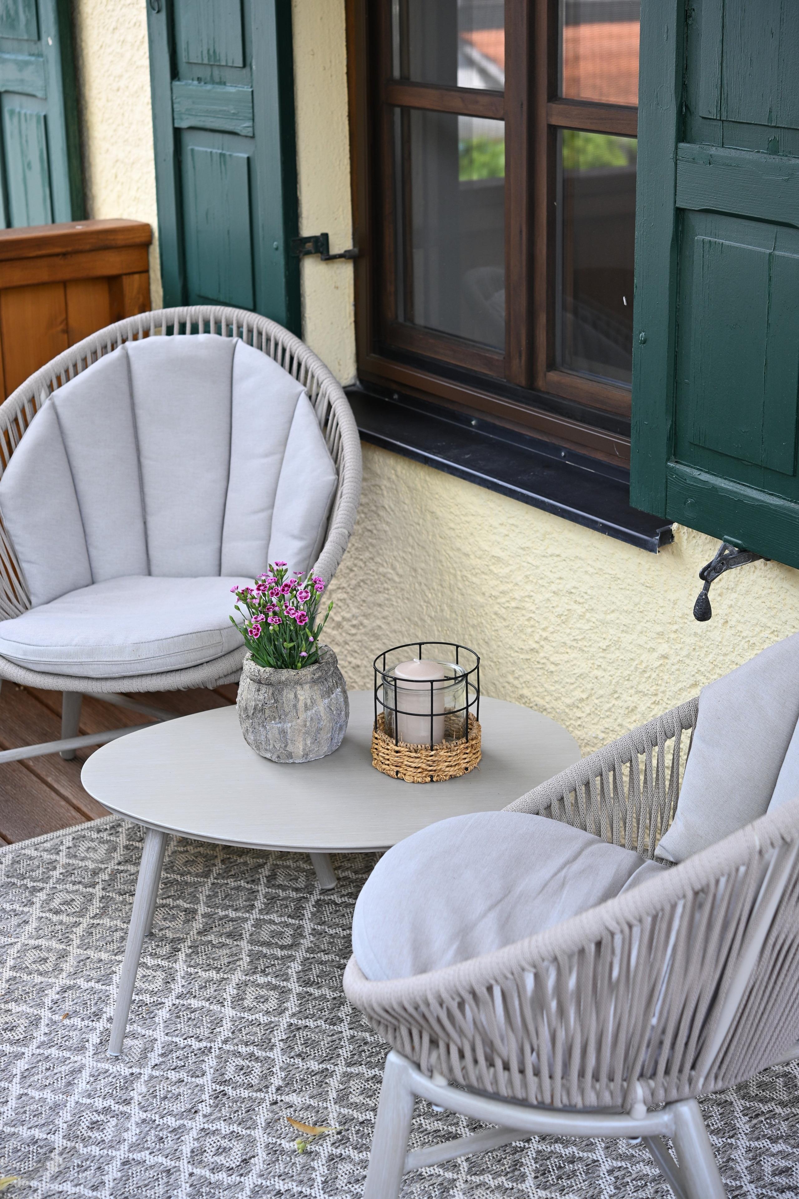 Der großzügige Balkon ist überdacht und hat 2 Aussenlampen und im Sommer einen Elektrogrill.