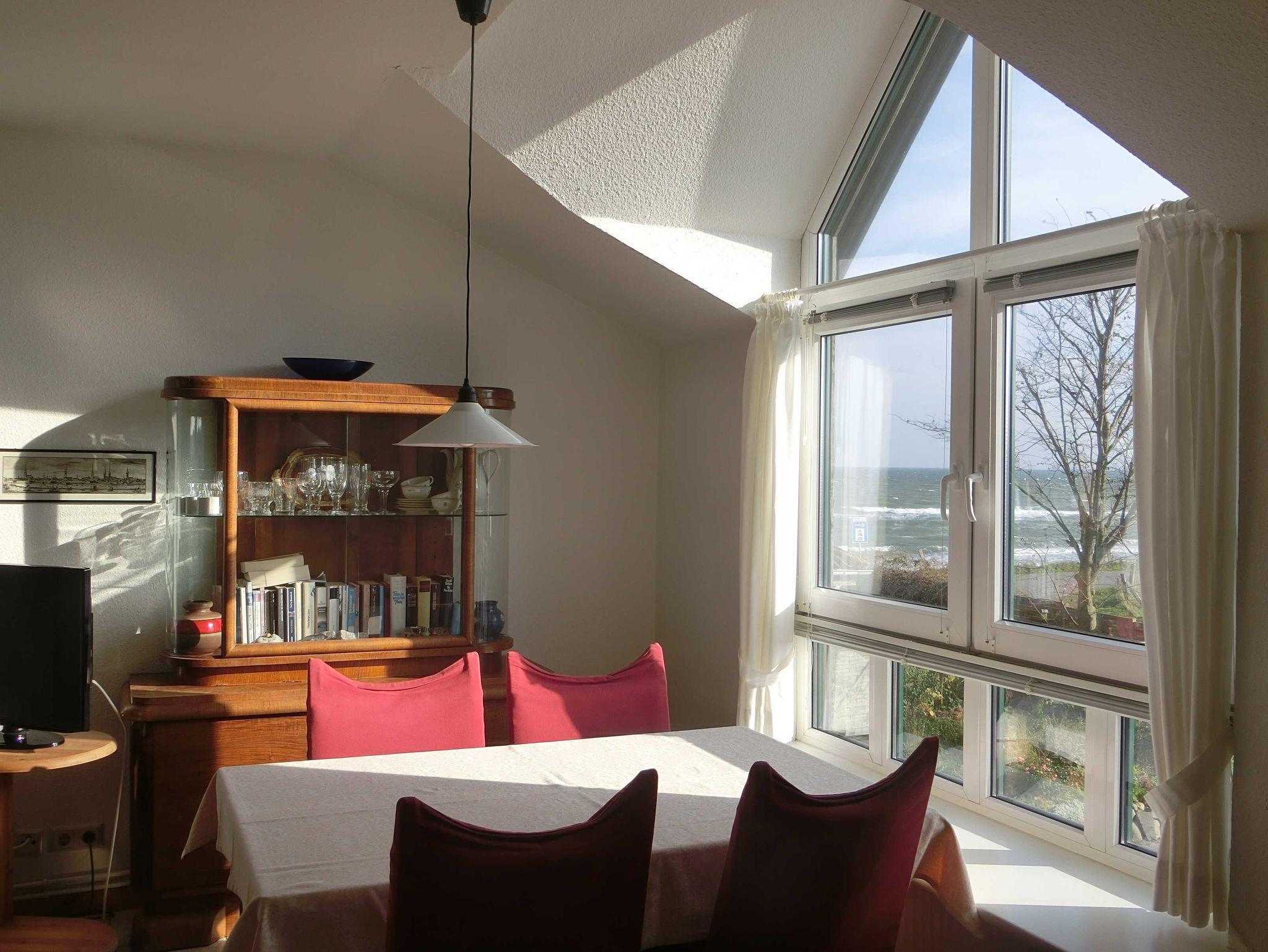 Unsere Ferienwohnung 3 liegt im 1. Stock an der Ostseite unseres Wirtschaftsgebäudes, und bietet somit aus allen Fenstern einen herrlichen Blick auf die Ostsee.