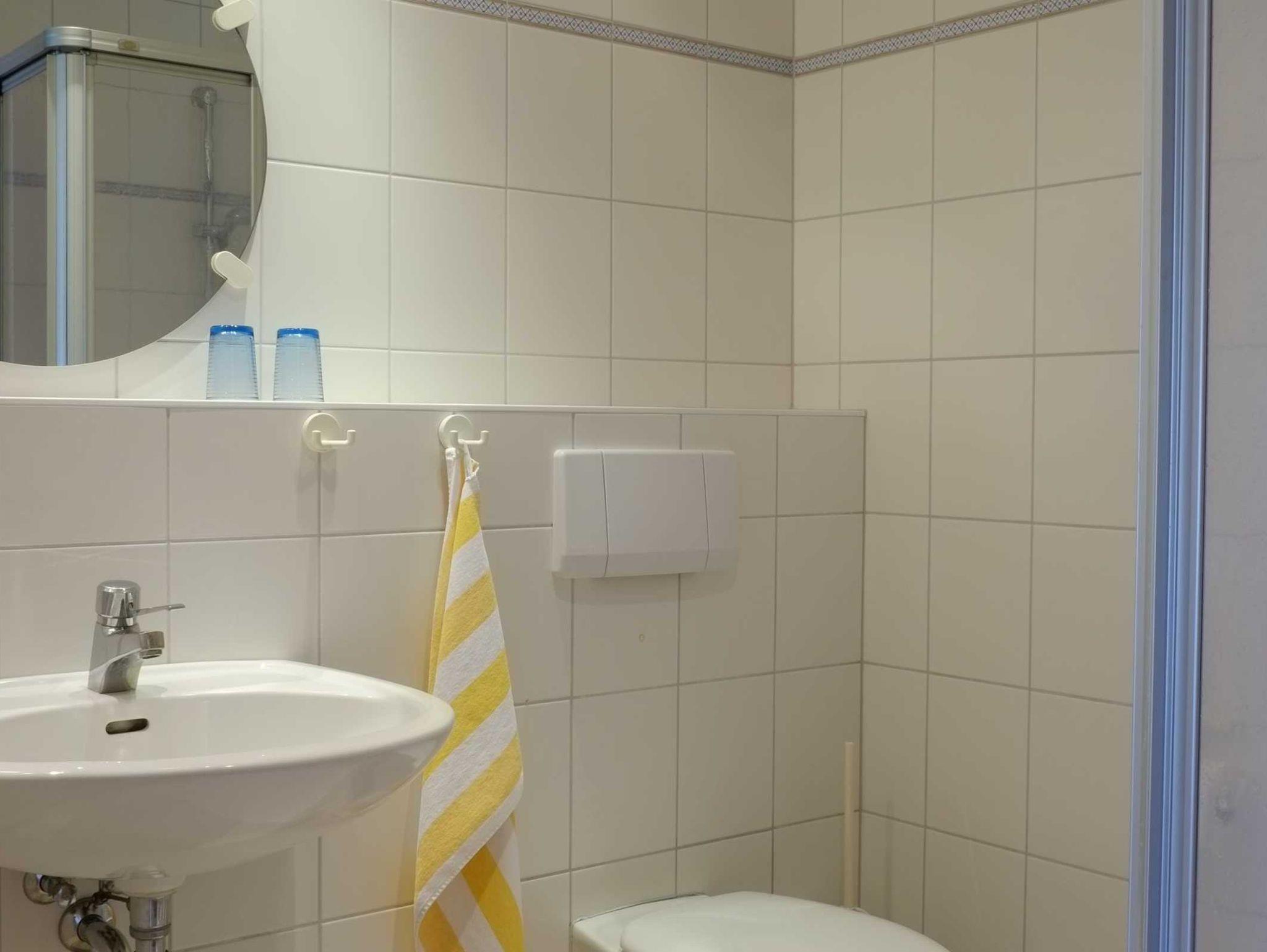zwei Einzelbetten, einen großzügigen Wohnraum und ein Duschbad. Im