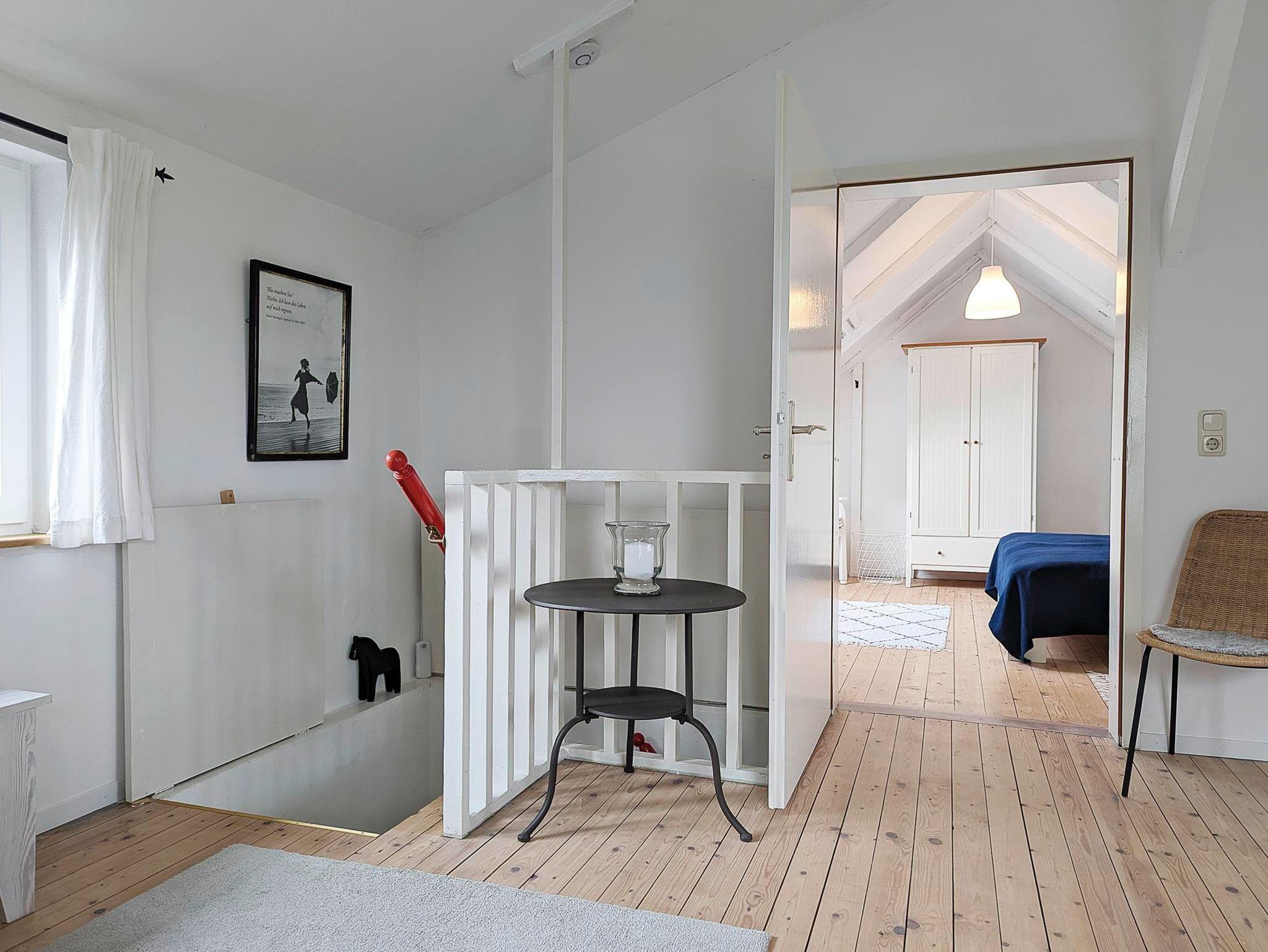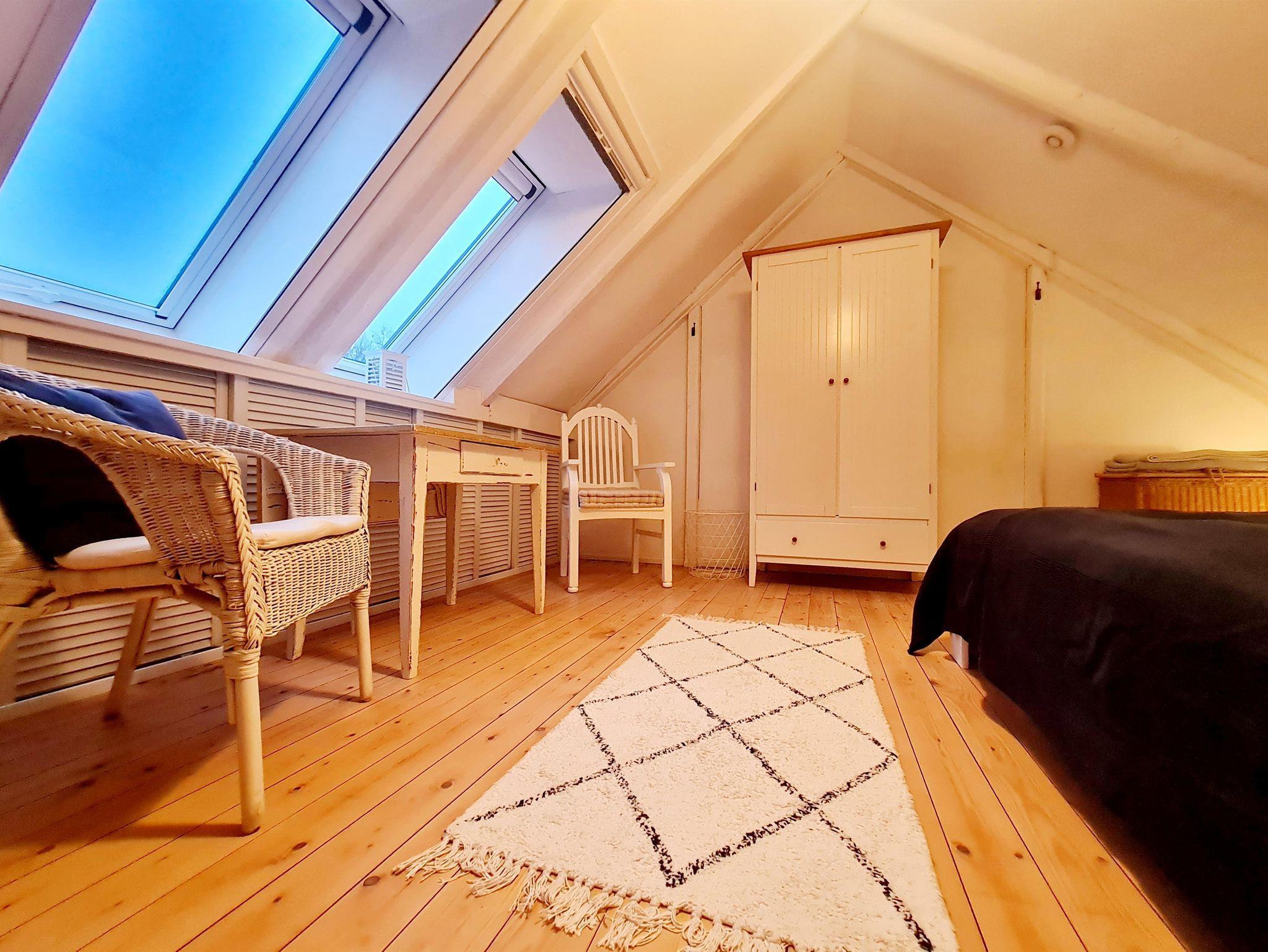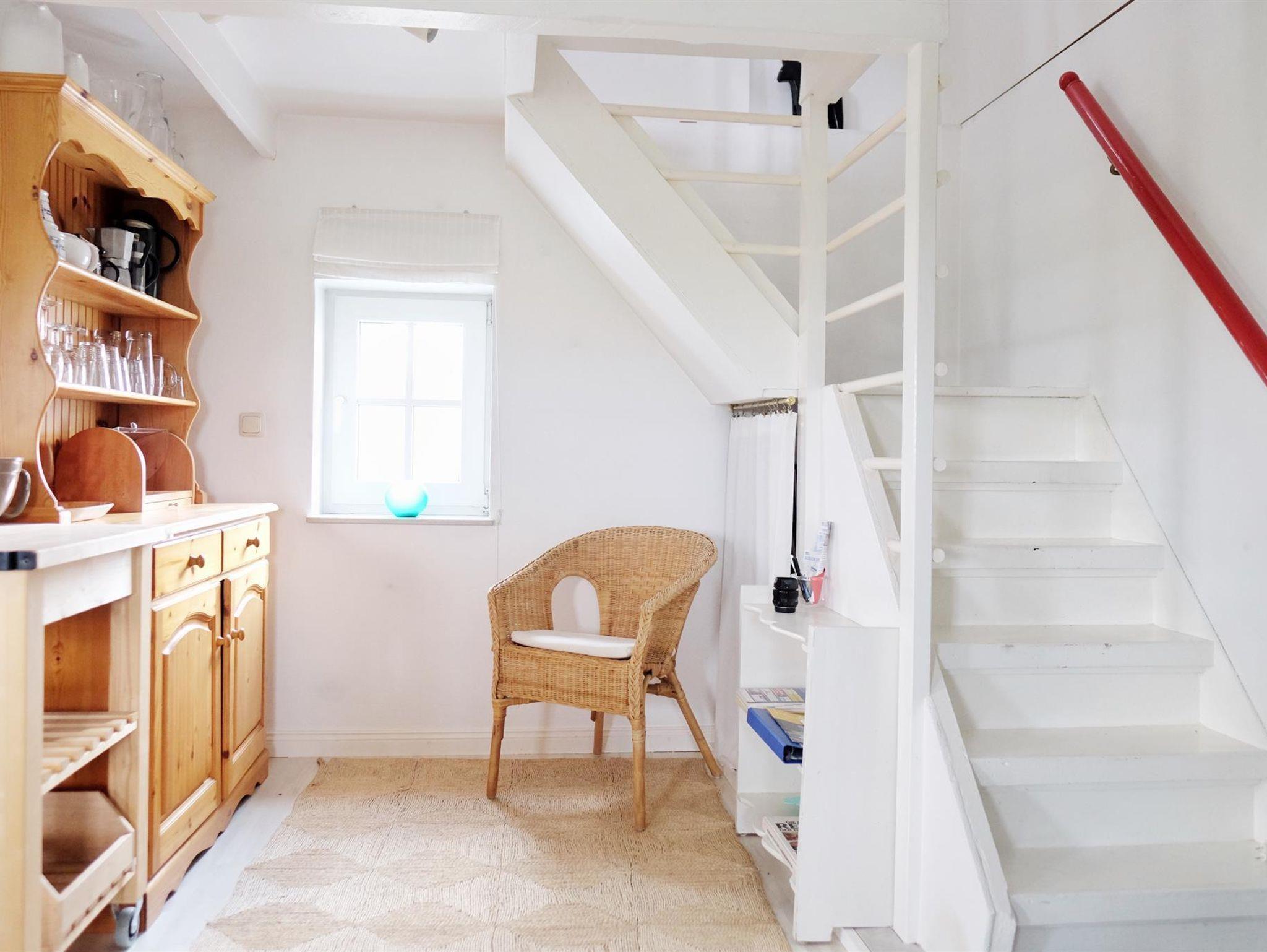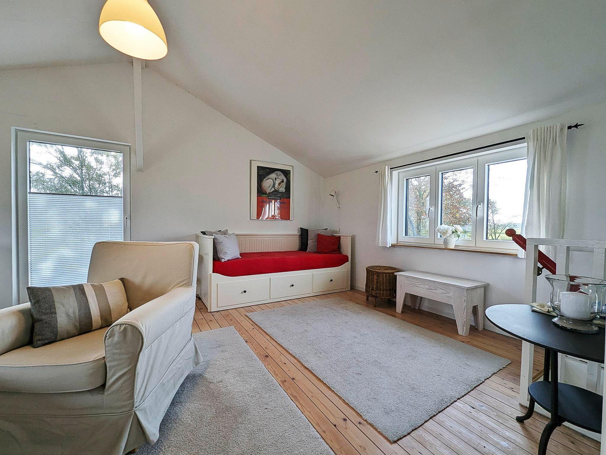 Im Obergeschoss liegen der gemütlich eingerichtete, kombinierte Wohn-/Schlafraum mit Sitzecke und SAT-TV, einem Schlafplatz für 1 Person, sowie ein separater Schlafraum mit einem Doppelbett.
