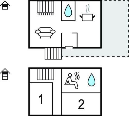 Badezimmer (nr. 2) - WC. Warmes und kaltes Wasser. Dusche