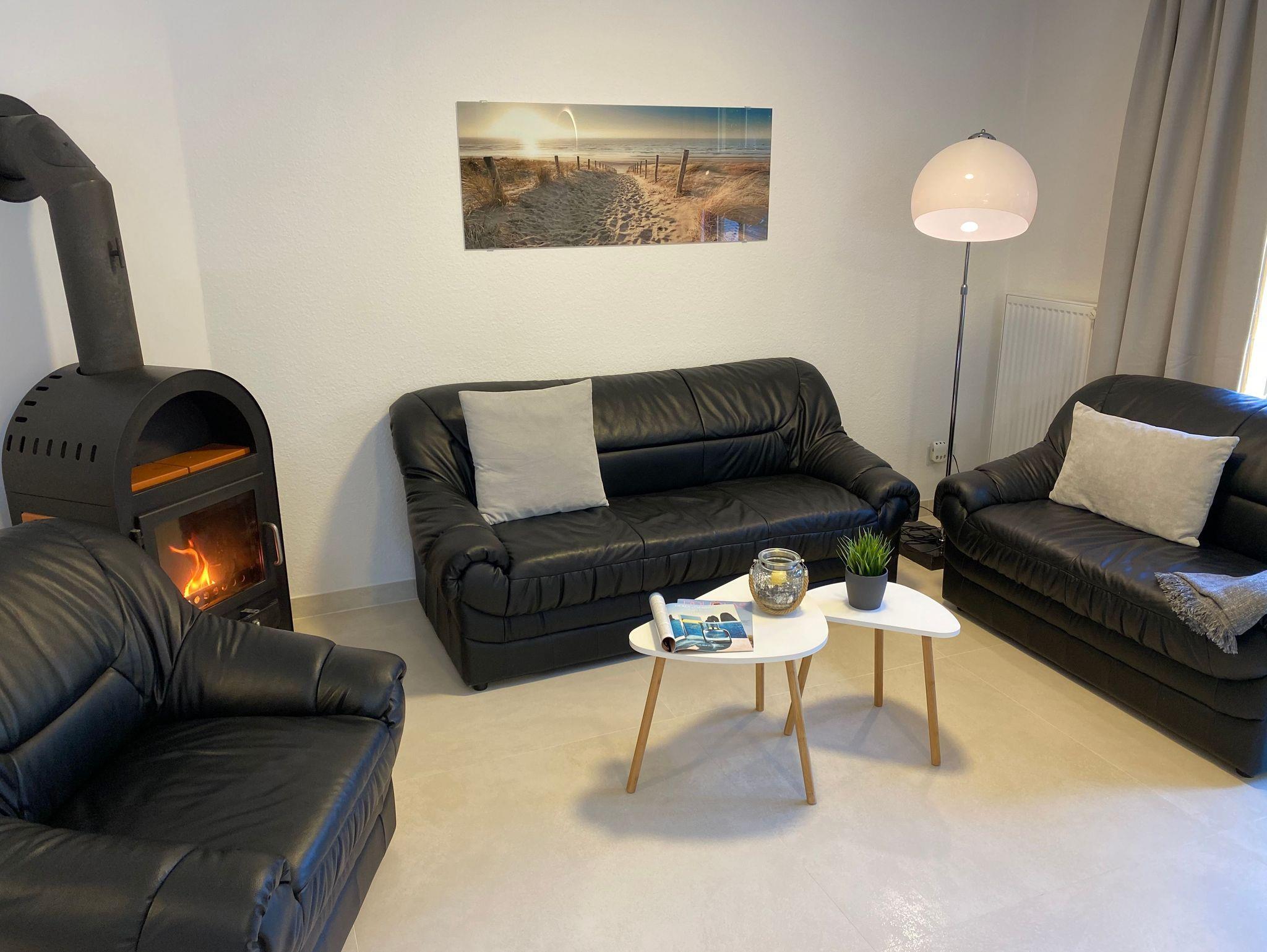 Wohnbereich mit TV und Kaminofen