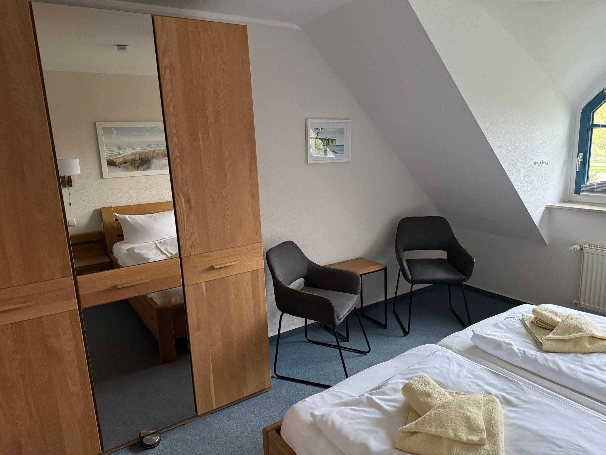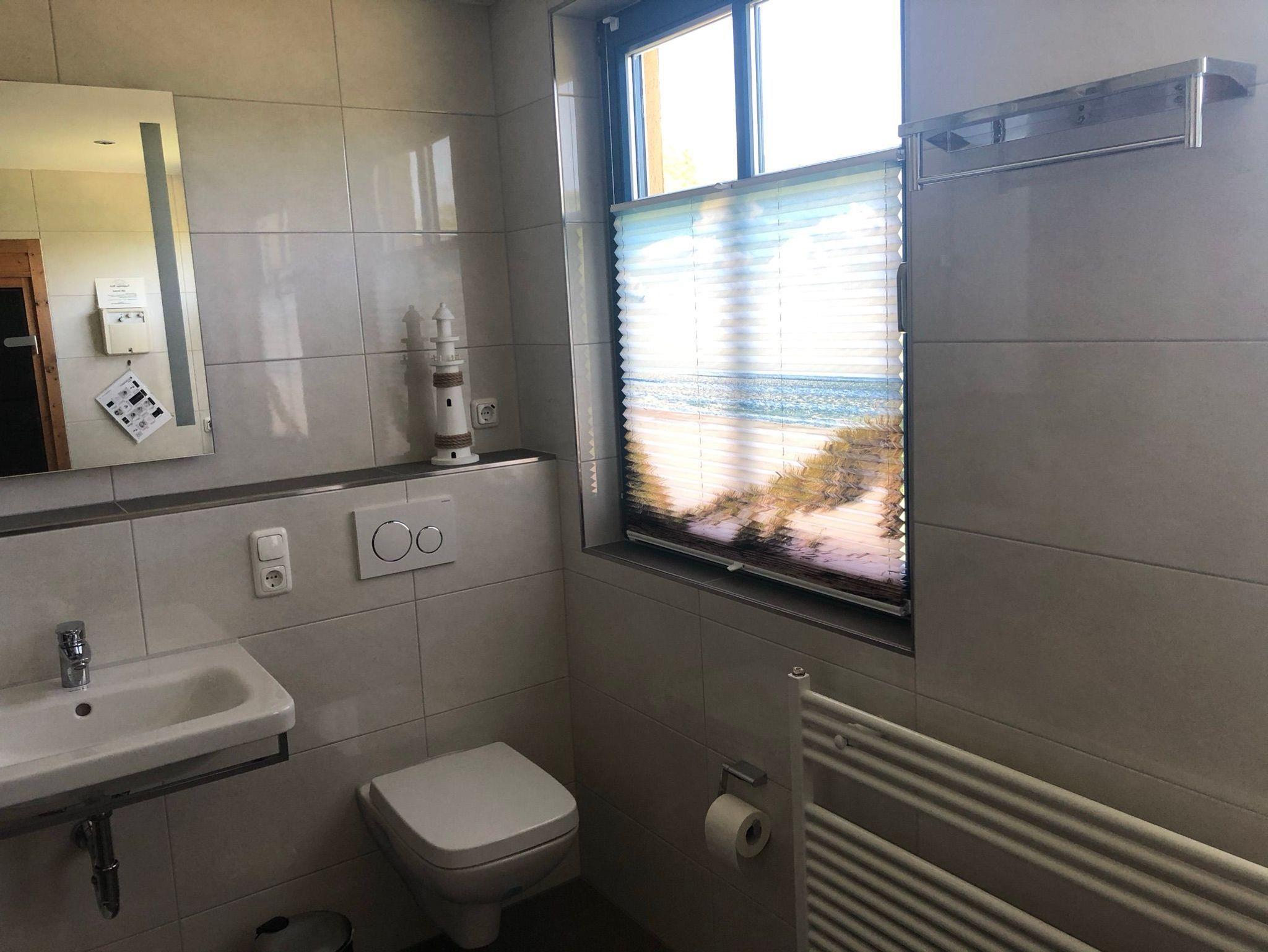 Die große Terrasse ist mit Sitzmöbeln, Sonnenliegen und Sonnenschirm auf hauseigenem Gründstück ausgestattet. Im Erdgeschoss finden Sie zusätzlich 1 Schlafraum mit 2 Einzelbetten, sowie ein Tageslichtbad mit Dusche und WC vor.
