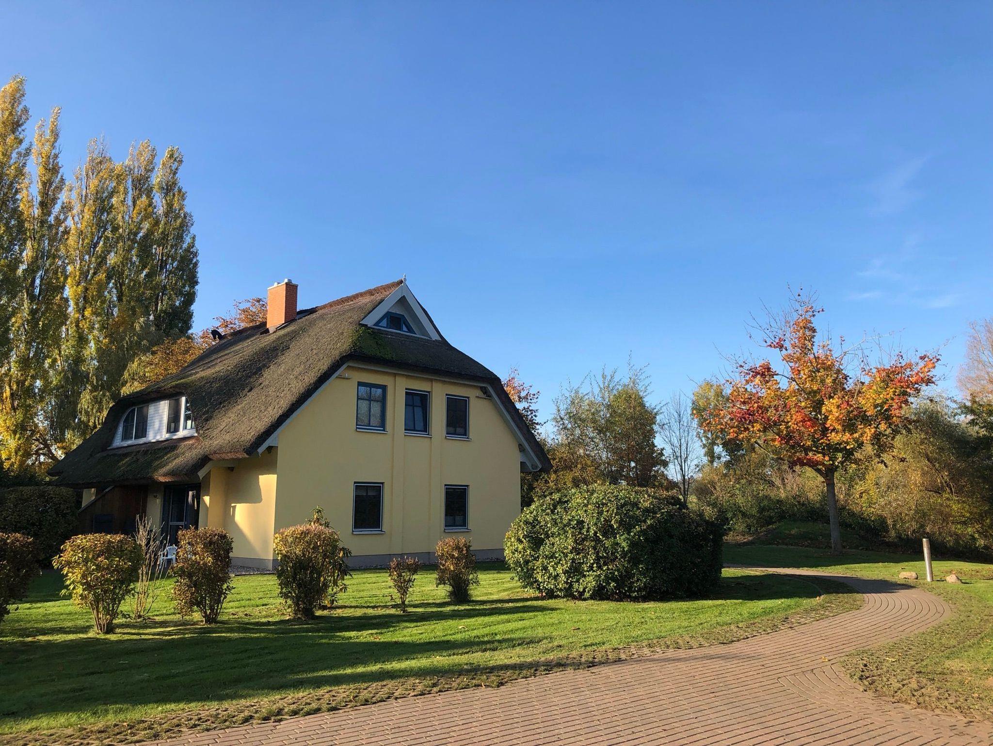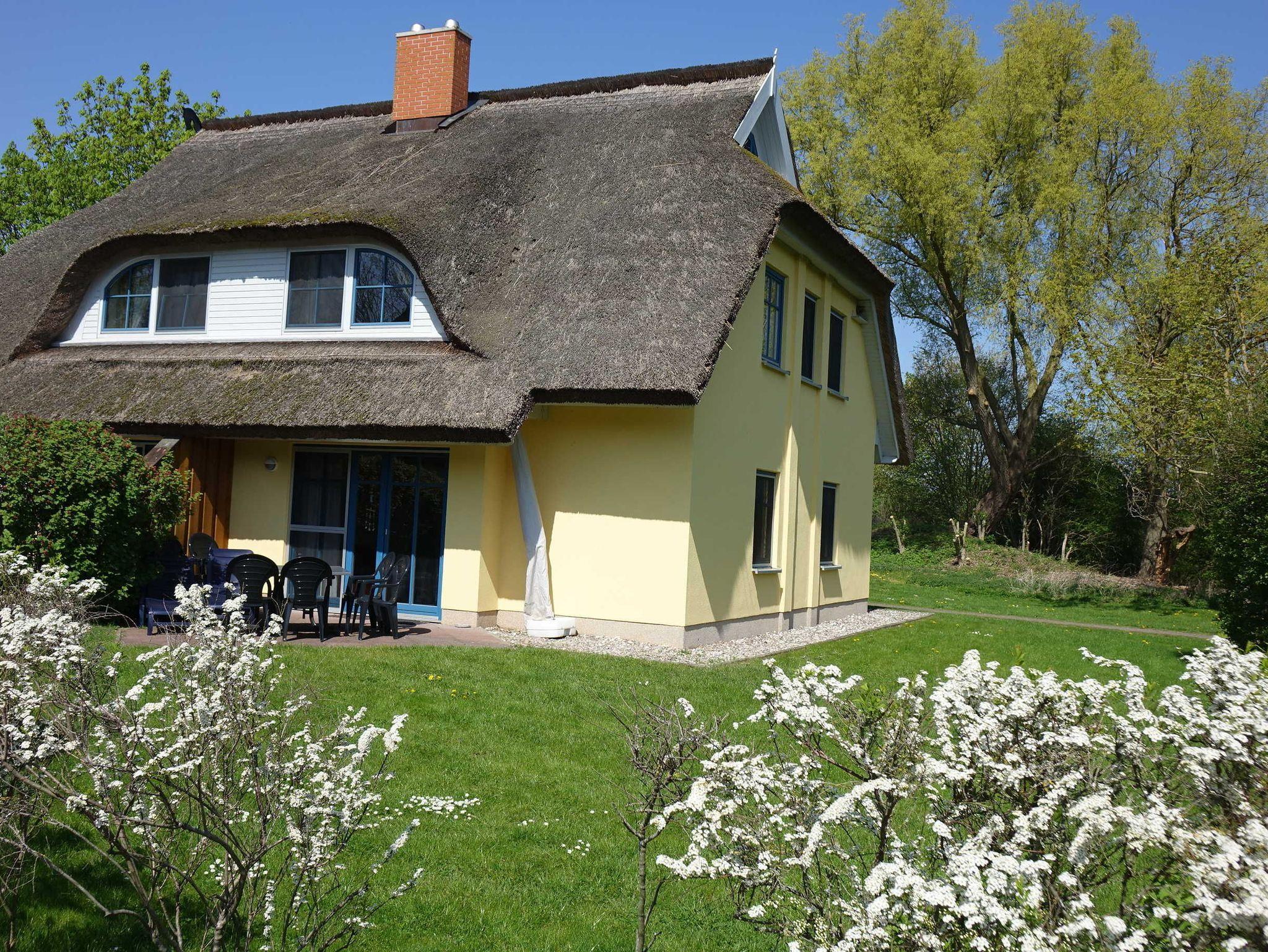Das reetgedeckte Doppelhaushälfte Weißdorn 1 liegt ruhig und idyllisch in dem kleinen Feriendorf Puddeminer Wiek.