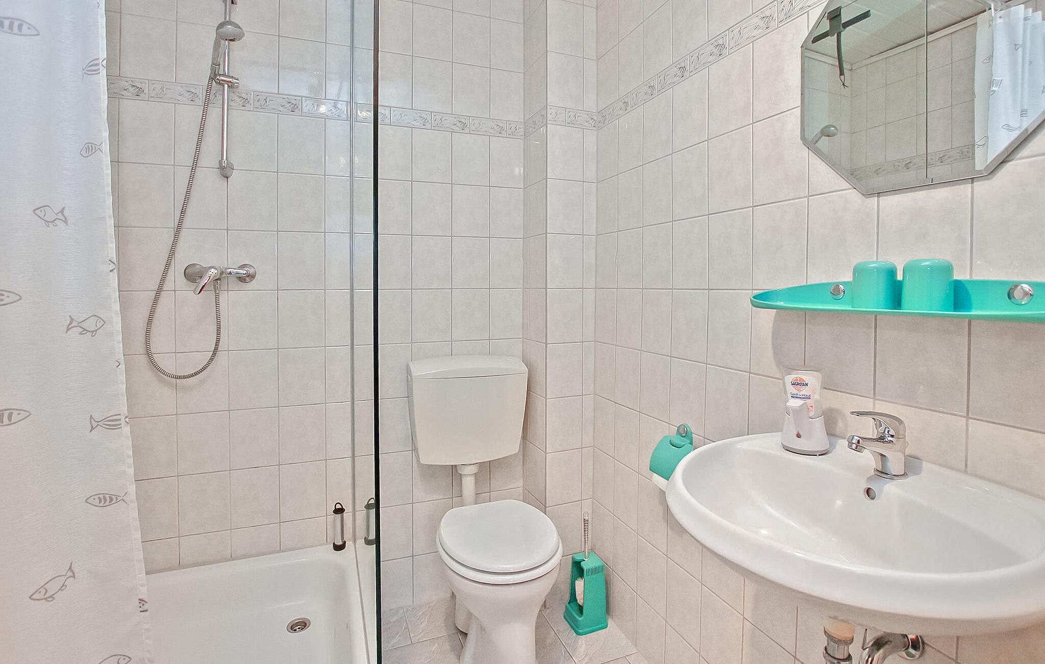 Badezimmer (nr. 1) - WC. Warmes und kaltes Wasser. Dusche