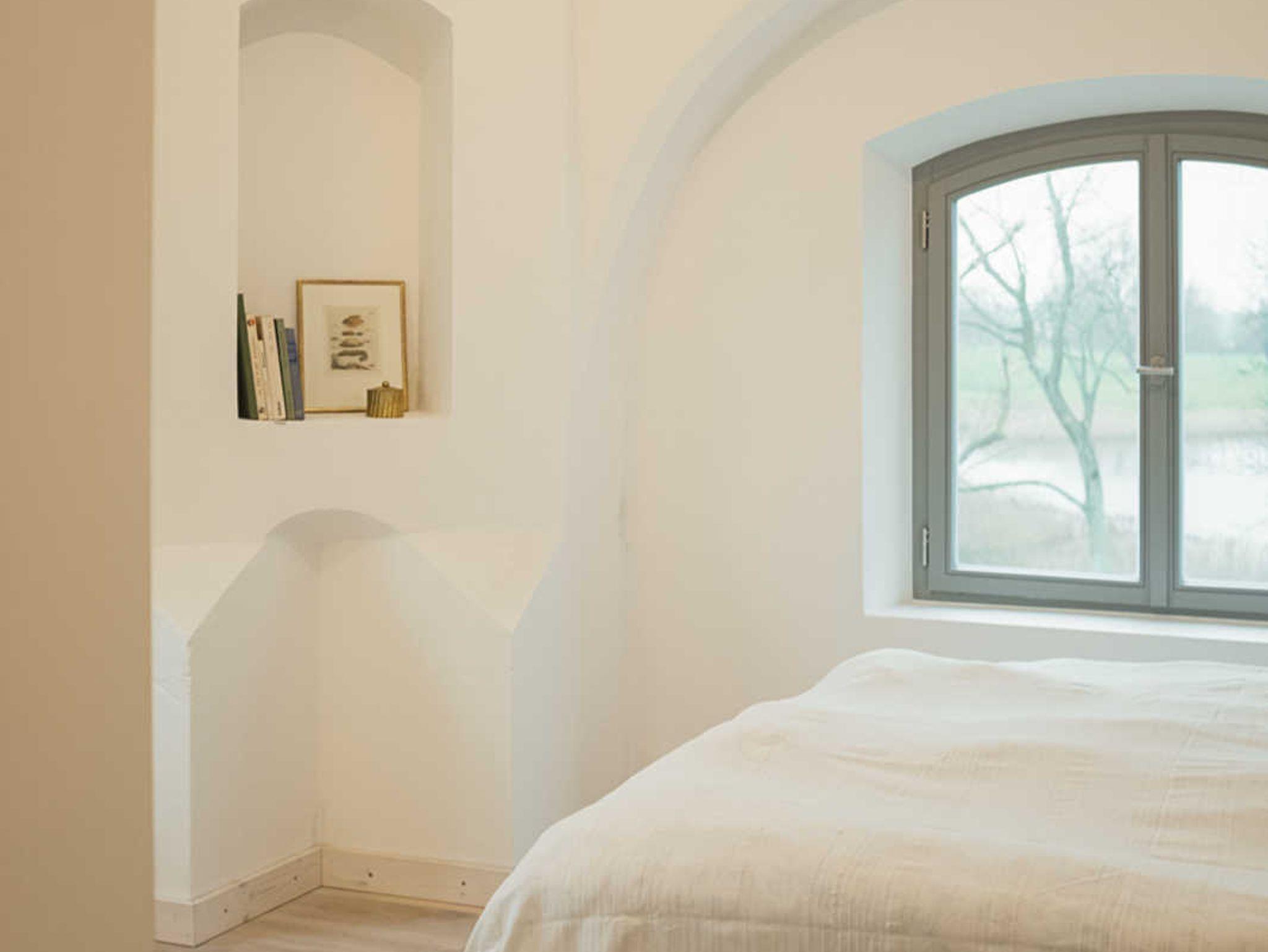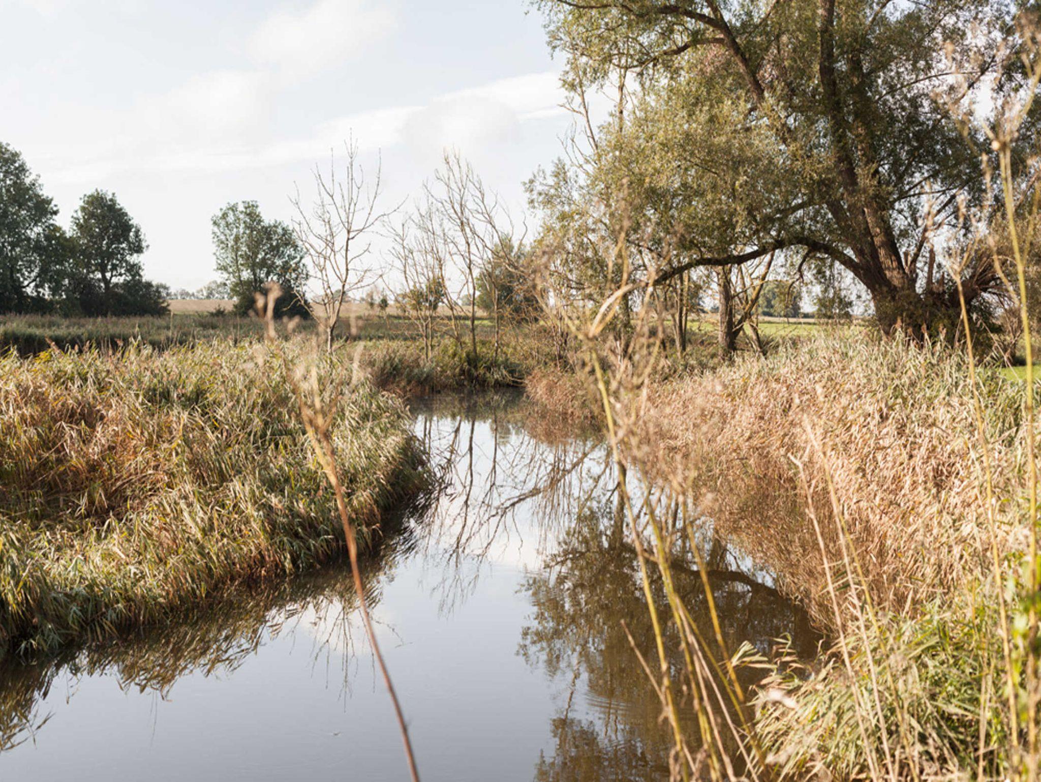 Die Grundmauern der alten Scheunenflächen des ehemaligen landwirtschaftlichen Guts sind wieder sichtbar gemacht worden. Der Ausblick von Haus und Park ist zu allen Seiten geprägt durch die Lage direkt am Wasser.