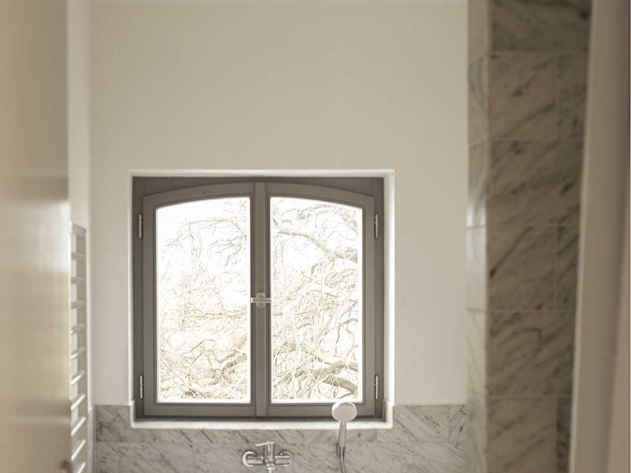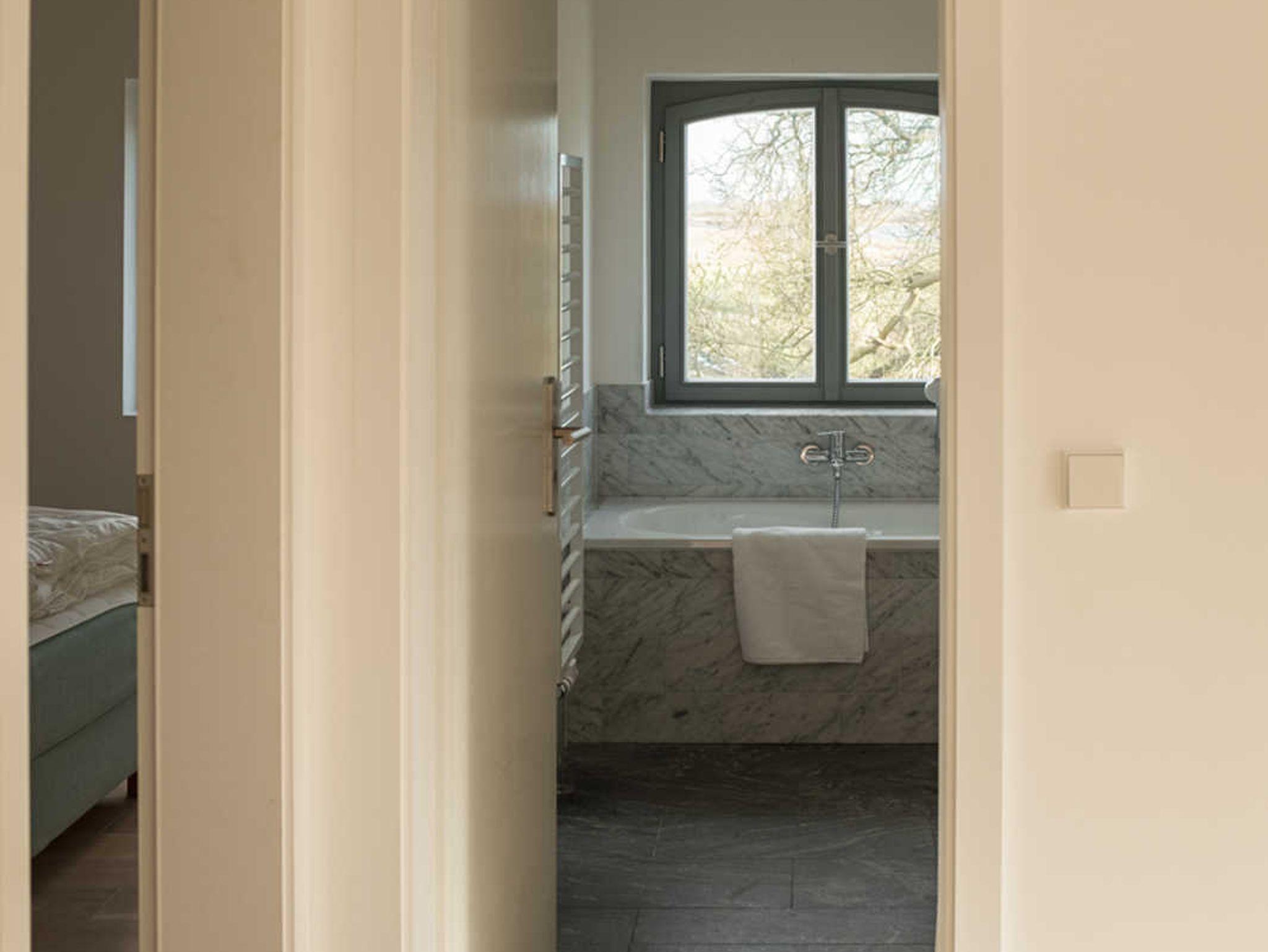 Die Grundmauern der alten Scheunenflächen des ehemaligen landwirtschaftlichen Guts sind wieder sichtbar gemacht worden. Der Ausblick von Haus und Park ist zu allen Seiten geprägt durch die Lage direkt am Wasser.