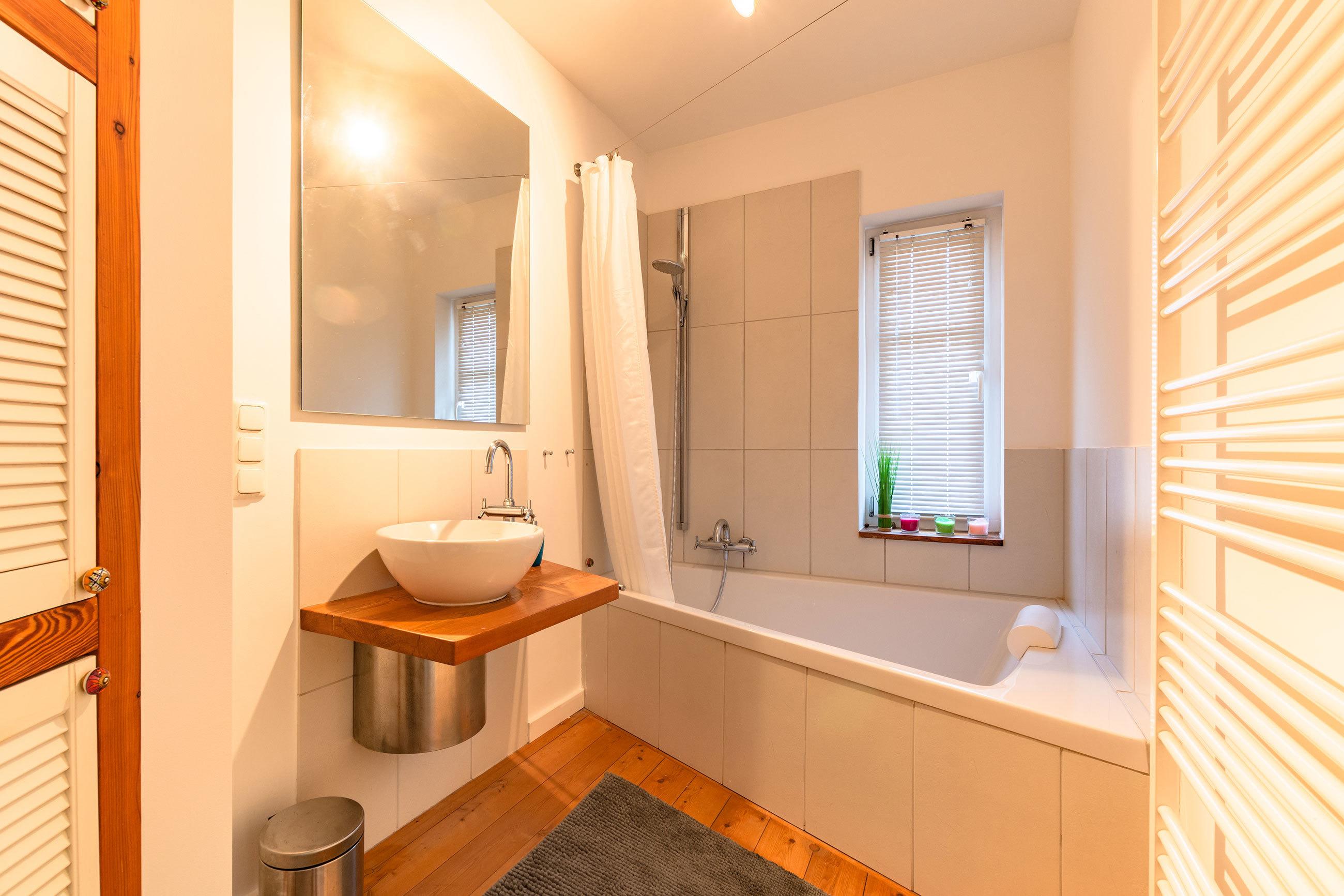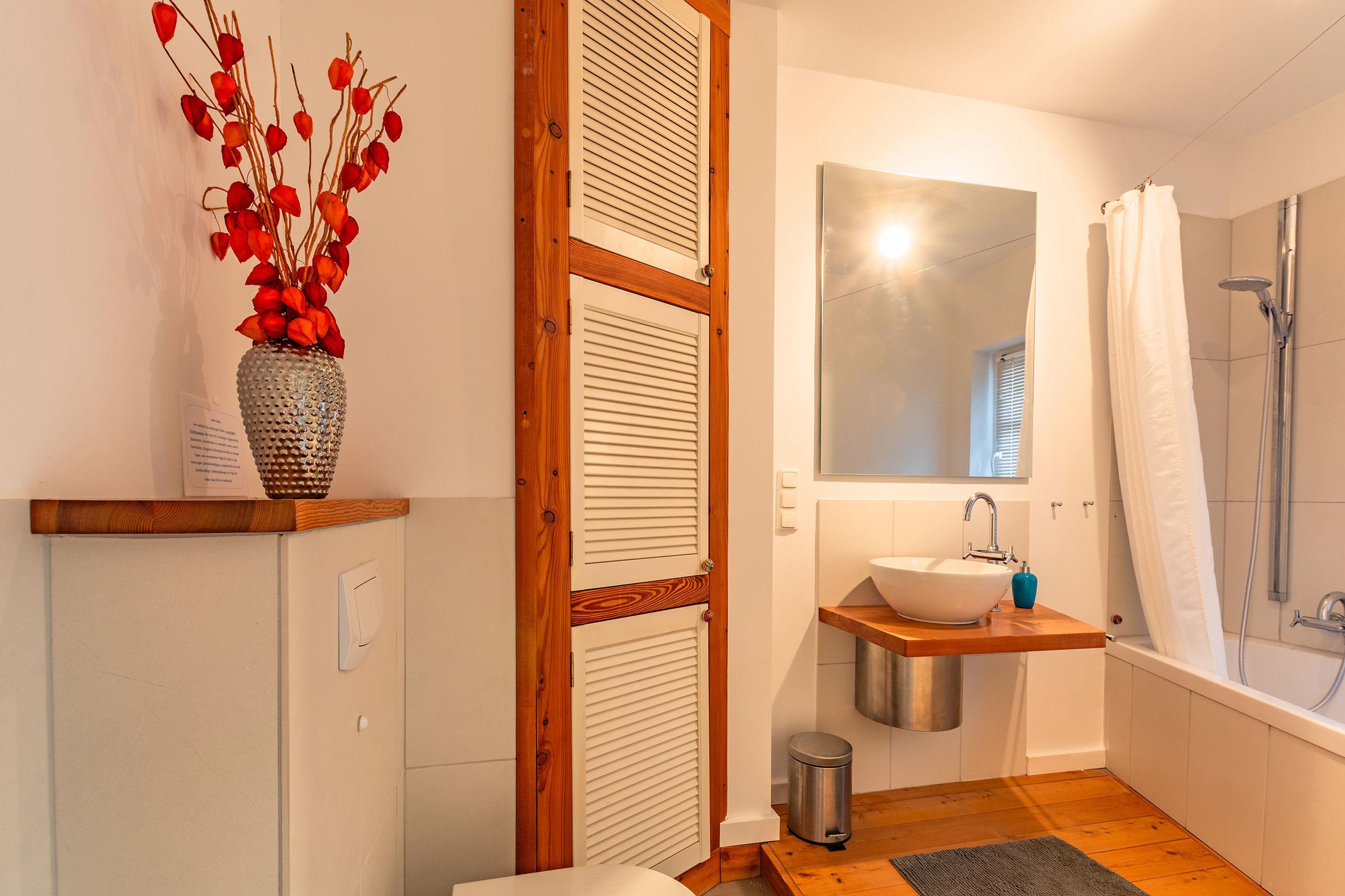 Die Küche hat u.a. eine Spülmaschine, Cerankochfeld, Mikrowelle, Backofen, Kaffeemaschine, Wasserkocher. Sie haben SAT-TV und freies WLAN. In dieser Wohnung haben Sie ein geräumiges und gemütliches Badezimmer mit Badewanne/Dusche, WC. Die Räume haben Fußbodenheizung und Fliesenboden.
