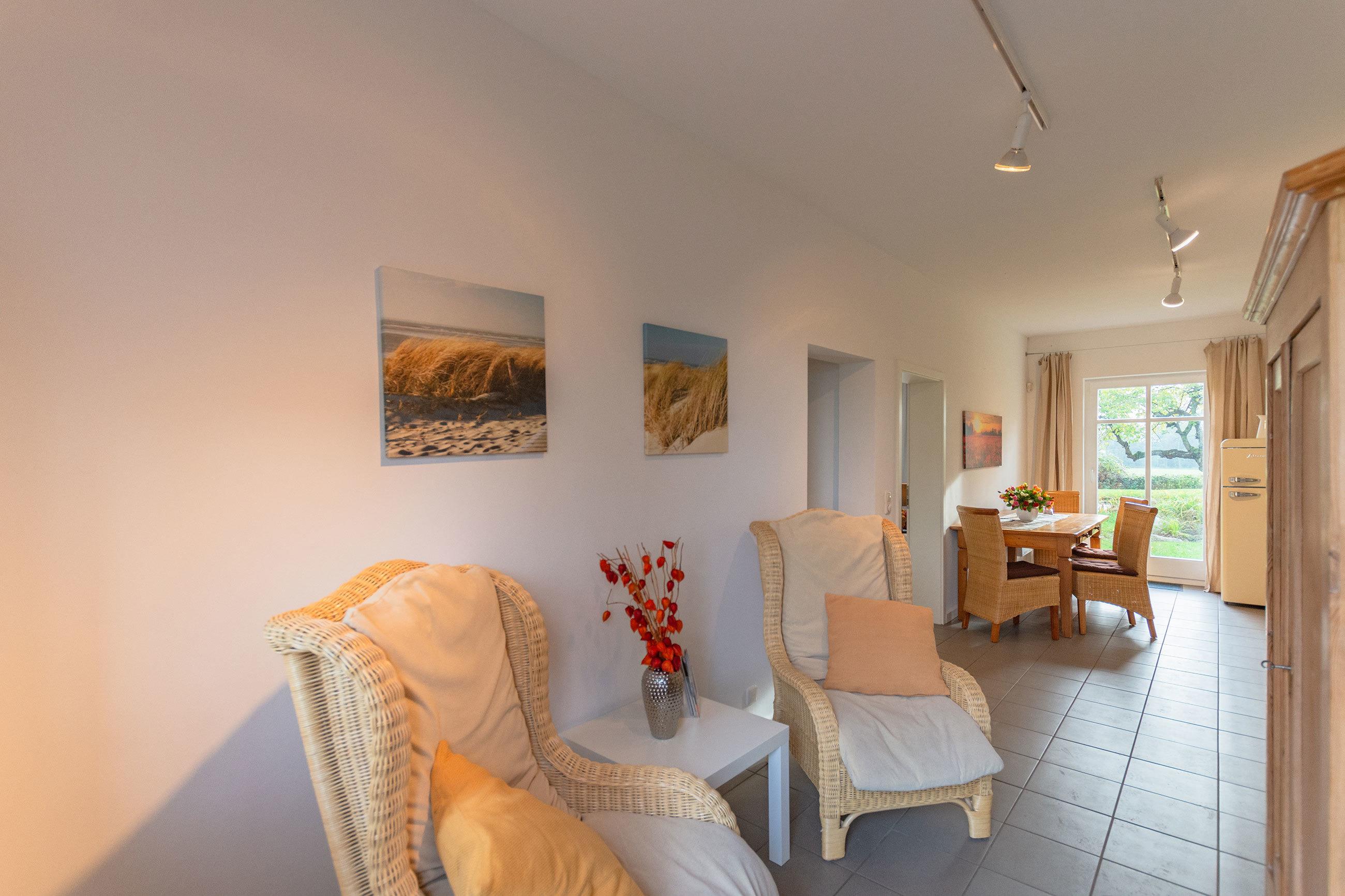 Das Wohnzimmer lädt mit einem Fernseher, einer großen Couch, die man schnell zum Bett für eine weitere Person umbauen kann, zum Entspannen ein. In der Leseecke können Sie in zwei urgemütlichen Ohrensesseln die Zeit vergessen. Im separaten Schlafzimmer finden Sie ein Doppelbett, einen Schrank und einen zusätzlichen kleinen Fernseher.