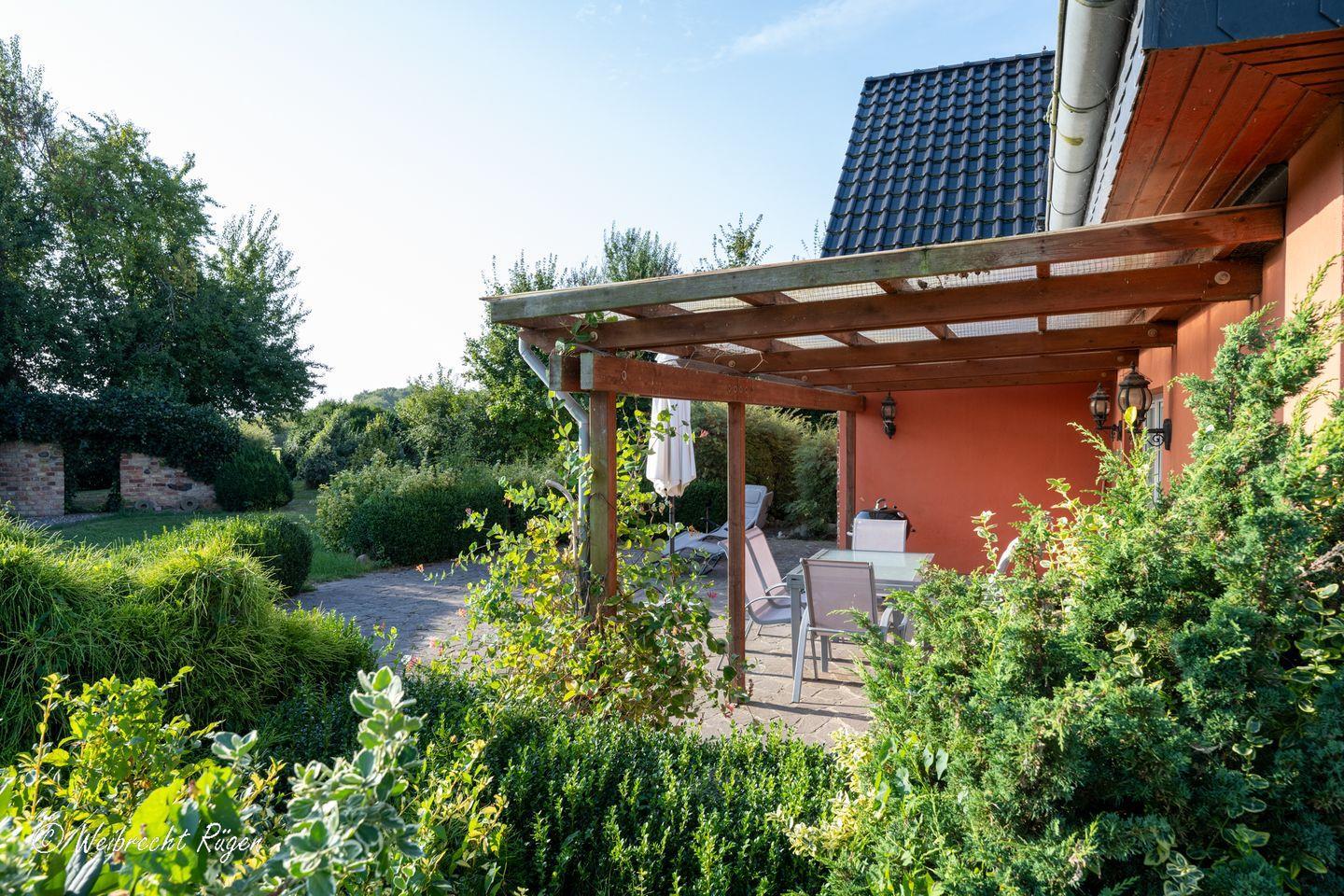 Ein echtes Highlight ist der über 3.000 m² große, komplett eingefriedete Garten – fast uneinsehbar und umgeben von Feldern. Hier finden Sie einen separaten Grillplatz und lauschige Sitzecken für ruhige Stunden in der Natur. Bis zu zwei wohlerzogene Hunde sind herzlich willkommen.