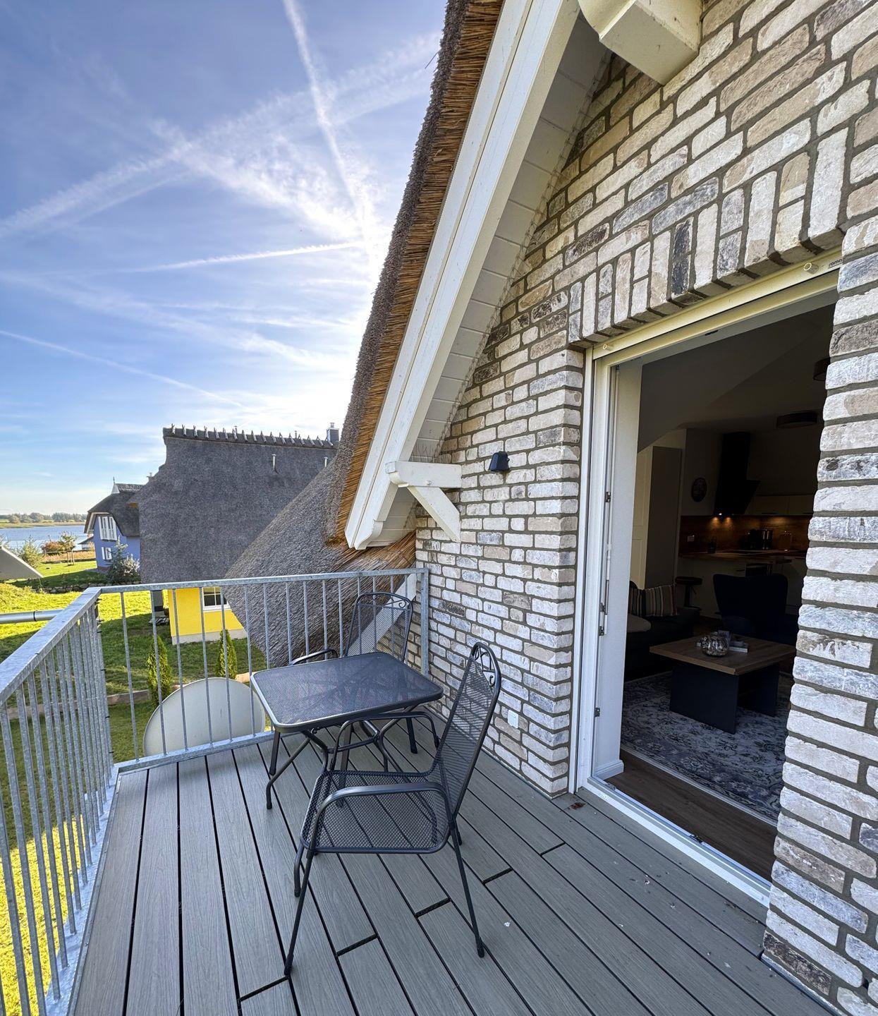 Ein moderner Küchentresen, ein Balkon mit Wasserblick sowie die hochwertige Ausstattung machen sie zur idealen Unterkunft für zwei Personen, die Ruhe und Komfort auf Rügen suchen.