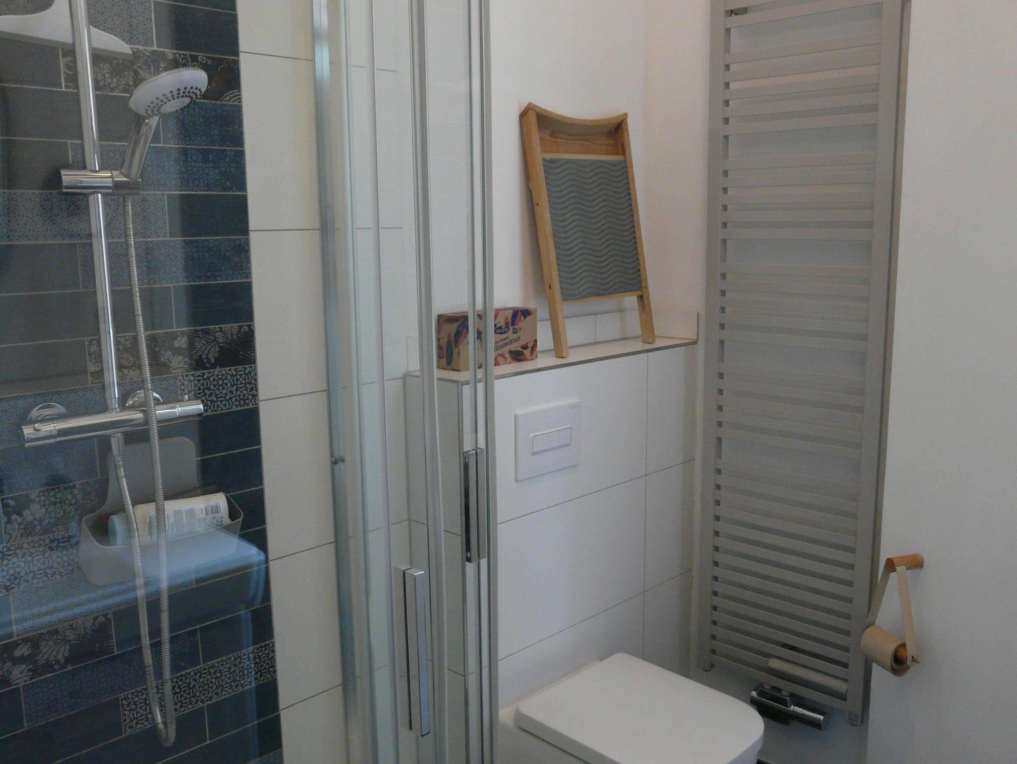 Im Badezimmer befinden sich eine Dusche, ein WC sowie ein Fön. Außerdem stehen Ihnen Duschbad, Shampoo und Seife zur Verfügung.