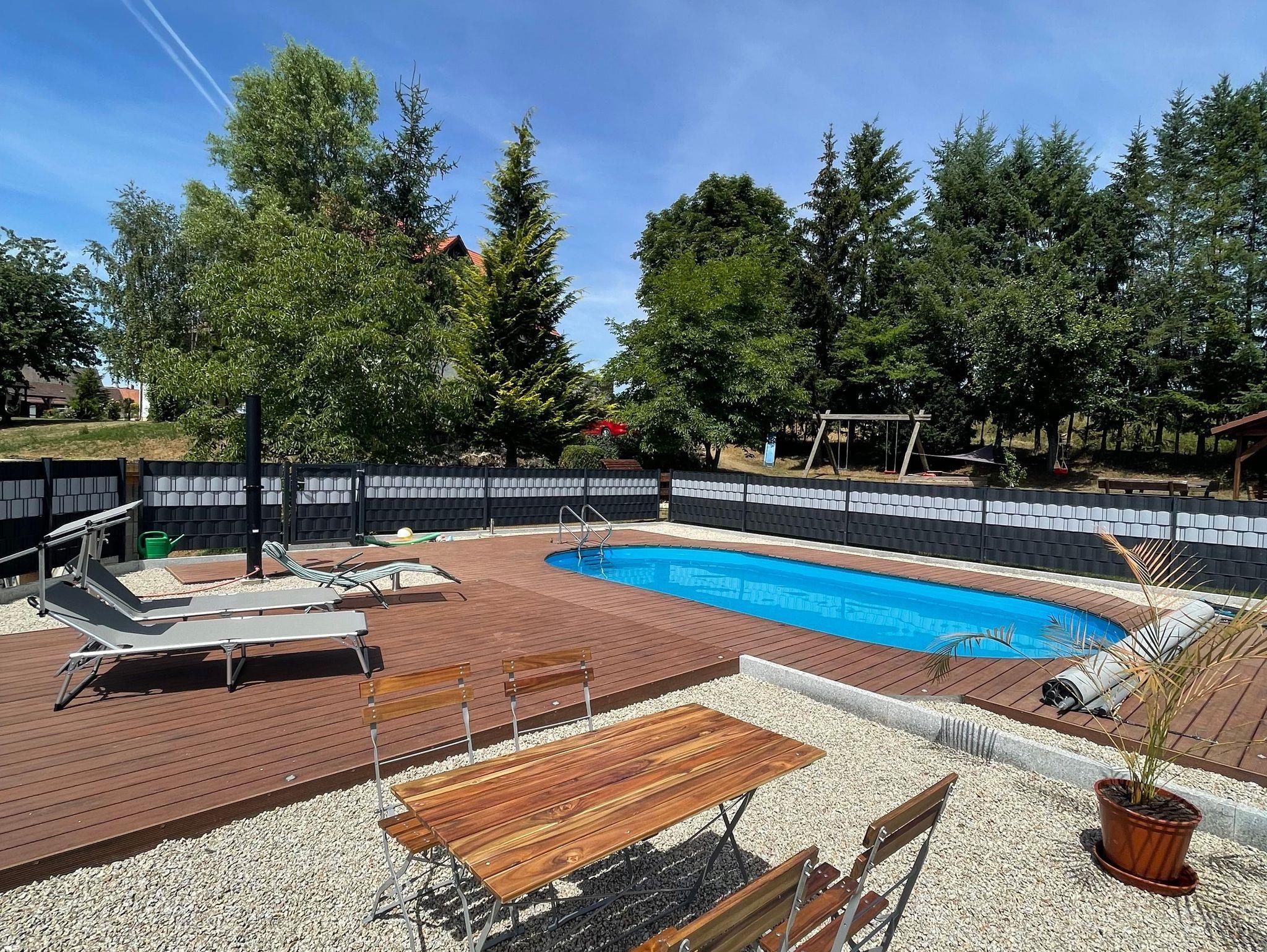 Neu ab der Sommersaison 2022: ein beheizter Swimmingpool (4 m x 8 m) mit einer Wassertiefe von 1,40 m und angrenzender Liegefläch lädt an heißen Sommertagen zum Abkühlen, Toben und Relaxen ein!