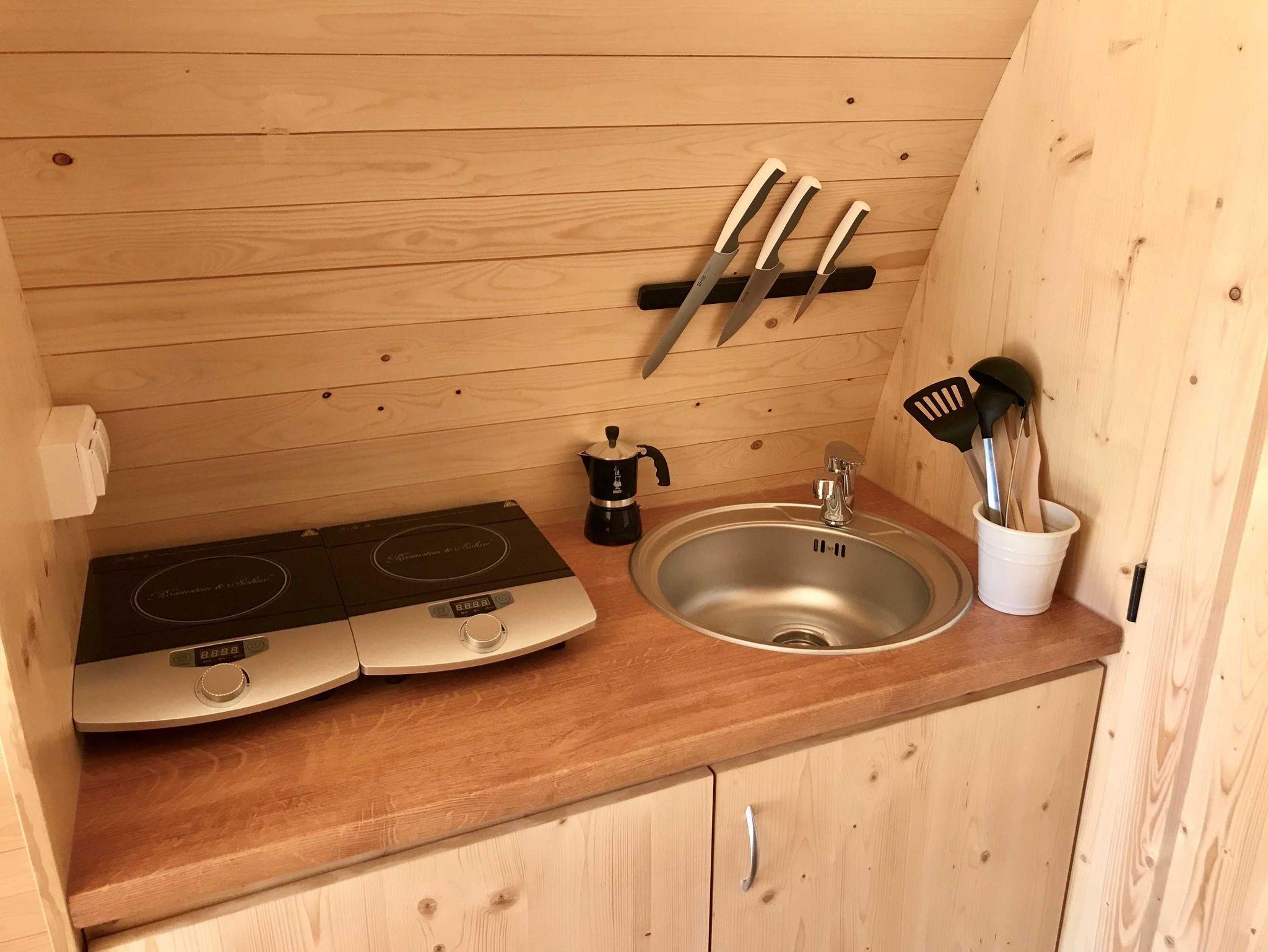 Insgesamt verfügen wir über 8 Holzhäuser mit identischer Ausstattung. Alle Holzhäuser sind mit Bad/Dusche und einer Miniküche ausgestattet. Die winterfeste Ausstattung sowie eine Heizung bieten auch ganzjährig einen warmen, kuscheligen Wohnkomfort umgeben von Holz. Alle Lodges eignen sich idealerweise für zwei bis drei Personen, mit Kindern kannst Du das Haus auch mit vier Personen bewohnen.