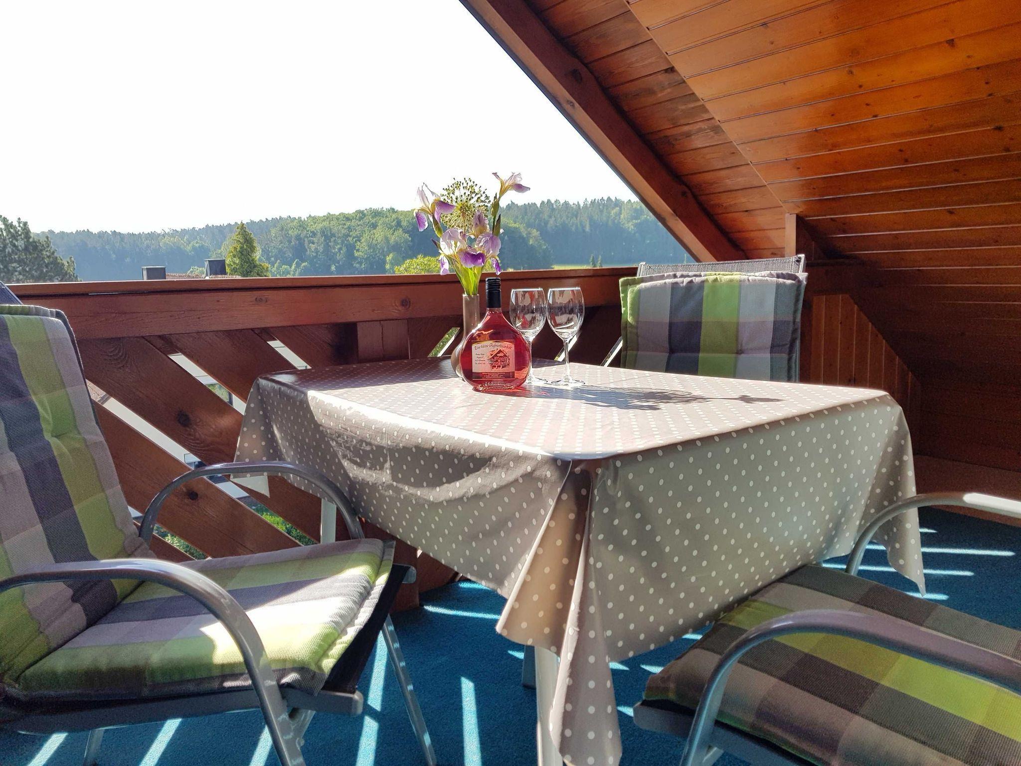 Das Besondere der Ferienwohnung 3 (ca. 45 qm) sind die zwei Balkone. Vom