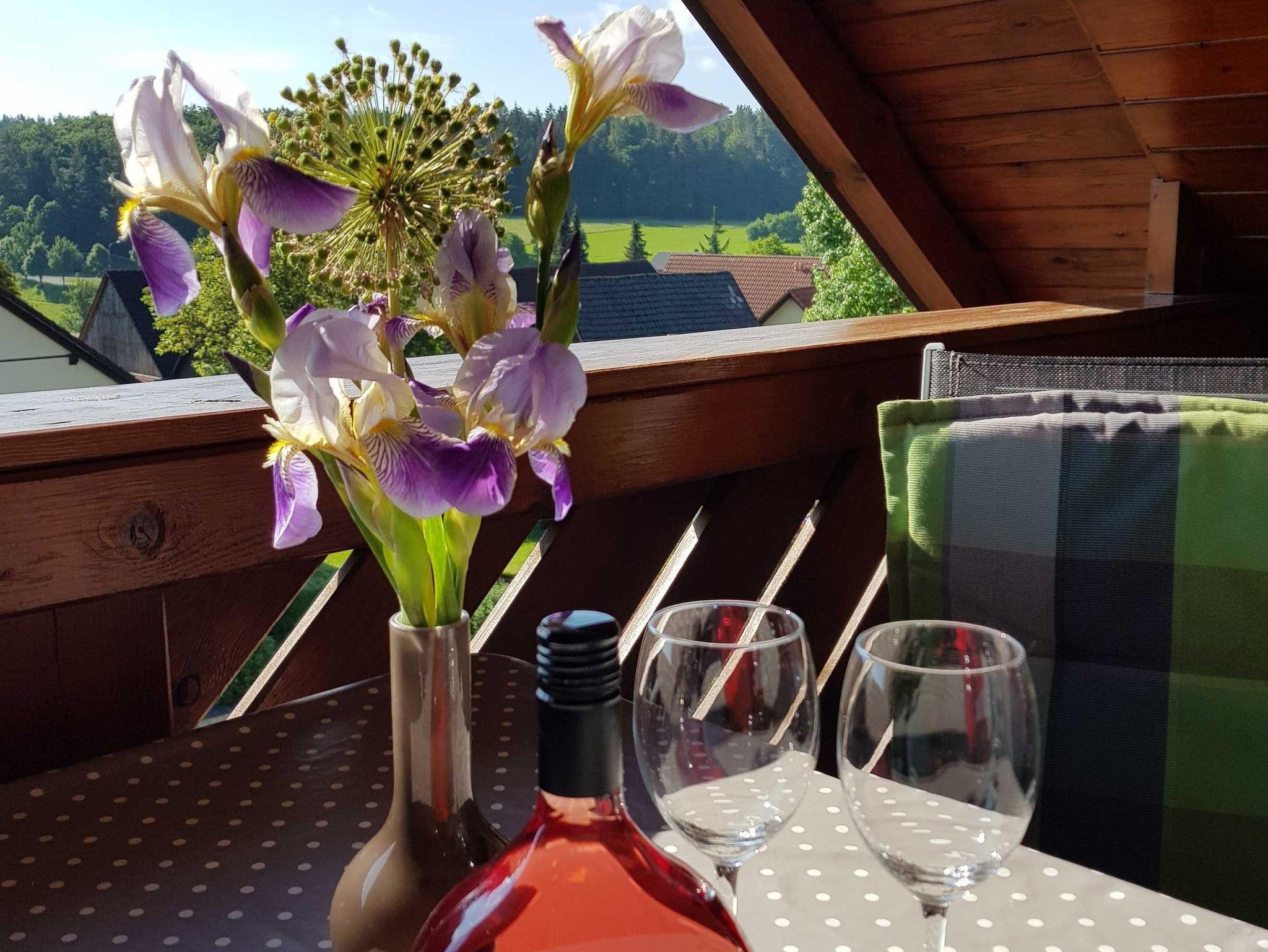 und der Sonnenuntergang auf dem Westbalkon mit Blick in die freie Natur.