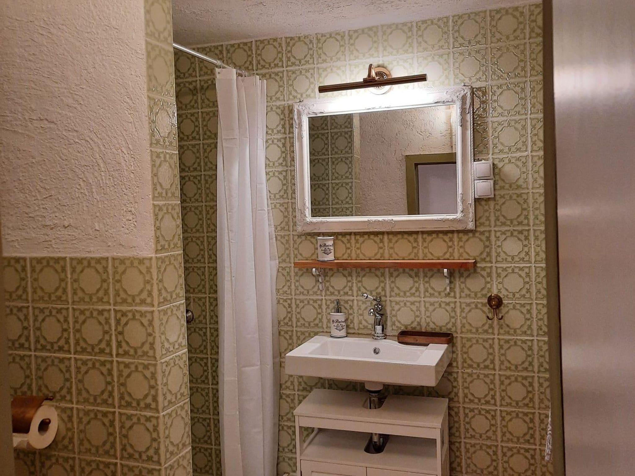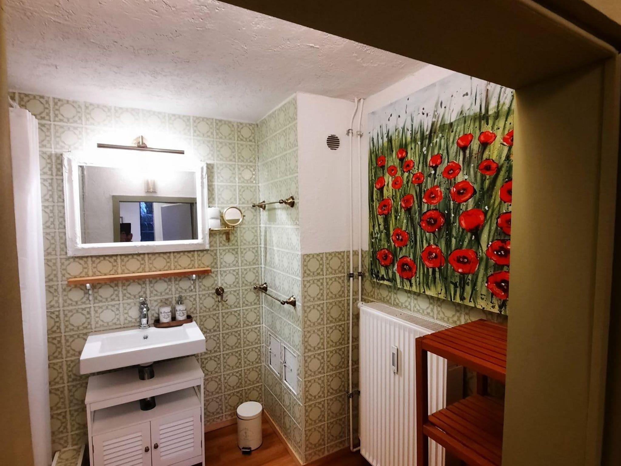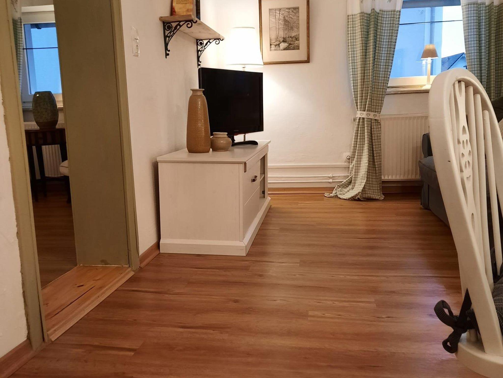 Die FeWo Wiesensee umfasst eine Diele mit Garderobe und Ganzkörperspiegel, ein Bad mit WC und Dusche, eine sehr gut ausgestattete Küche, sowie ein Wohn-Ess-Bereich mit Schlafcouch für 2 Kinder oder max 1 Erwachsenen. Im angrenzenden Schlafzimmer gibt es ein großes Bett (2x2m) mit ausreichend großem Kleiderschrank, Sitzgelegenheit und Kofferbock.