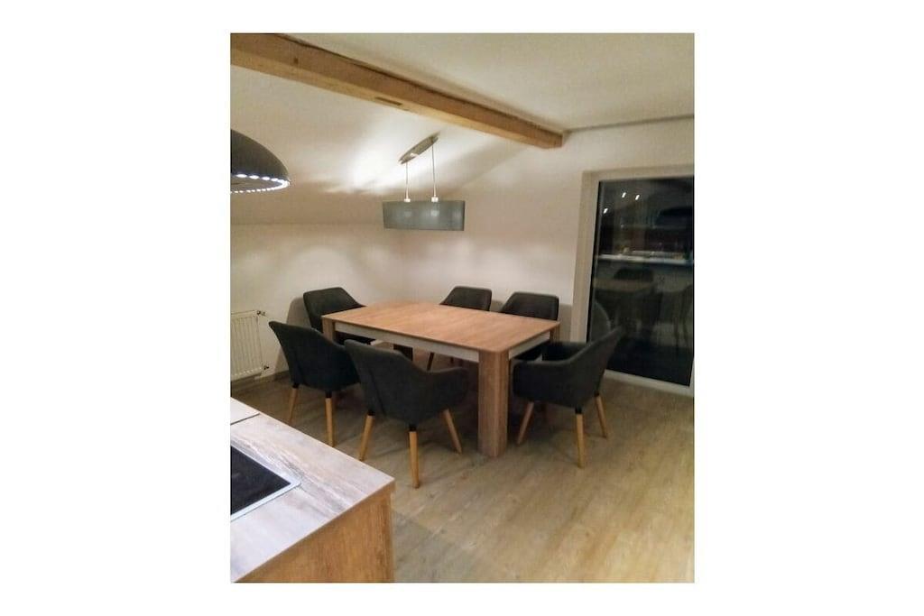 A cozy 95-square-meter apartment awaits you, featuring two bedrooms and a living room (sleeping six people). Newly renovated, a great kitchen, separate dining area, and living room. Two bedrooms, a bathroom with bathtub, shower, and toilet, a separate guest toilet, a balcony, access to the garden with a terrace, close to the forest, and a quiet location.