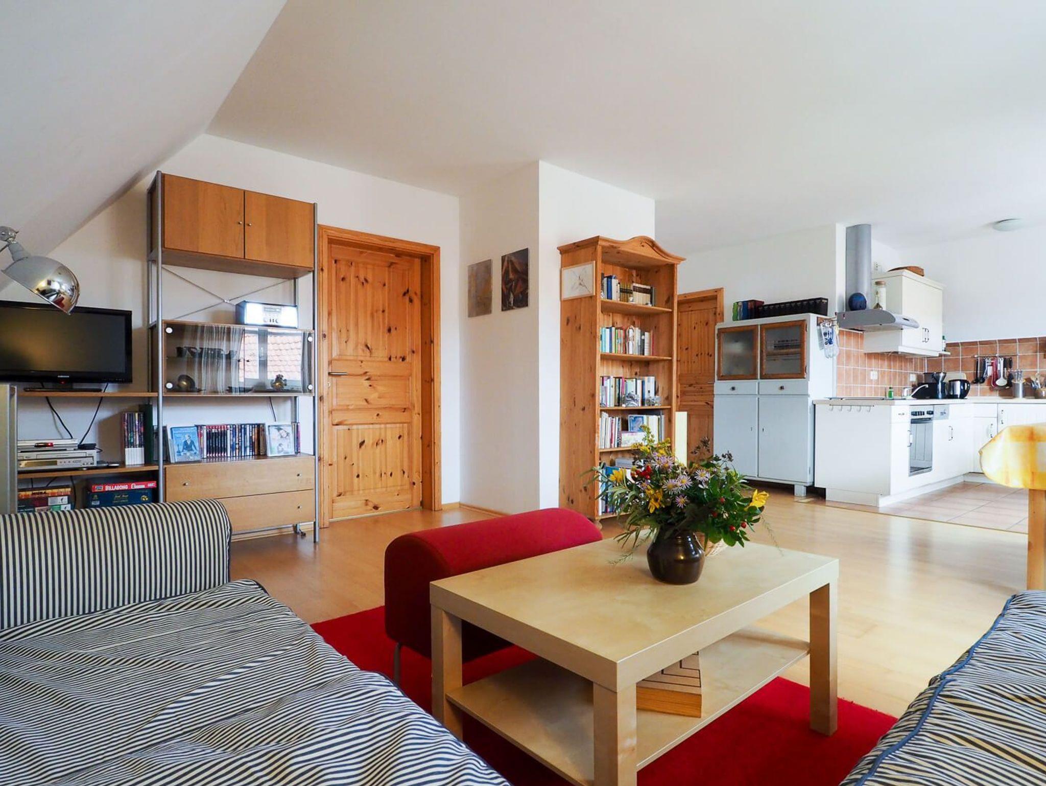 Die Meuder-Heuboden liegt im Dachgeschoss des Ferienhauses Meuder und eignet sich ideal für Paare oder kleine Familien mit bis zu drei Personen. Die Wohnung verfügt über ein separates Schlafzimmer mit Doppelbett, ein Wohnbereich mit Schlafsofa und Esstisch, eine kleine Küche sowie ein Badezimmer mit Dusche. Dachfenster sorgen für viel Licht und Gemütlichkeit. Zur Wohnung gehört ein zugewiesener, schattiger Sitzbereich im Grünen. Der große Garten mit Grillmöglichkeit und Kräuterbeet steht allen Gästen des Hauses zur Mitnutzung offen. Individuell eingerichtet, mit persönlichen Details und liebevoll erhaltenem Charme, ist diese Wohnung perfekt für alle, die das Einfache und Echte suchen.