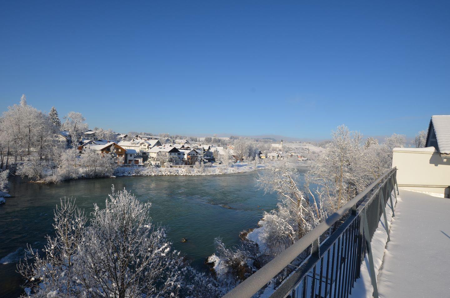 Über die Tür an der Küchenzeile gelangen Sie zum Highlight dieser Ferienwohnung. Die große Terrasse lädt zum Träumen ein. Genießen Sie den Panoramablick auf die Berge und den Lech.