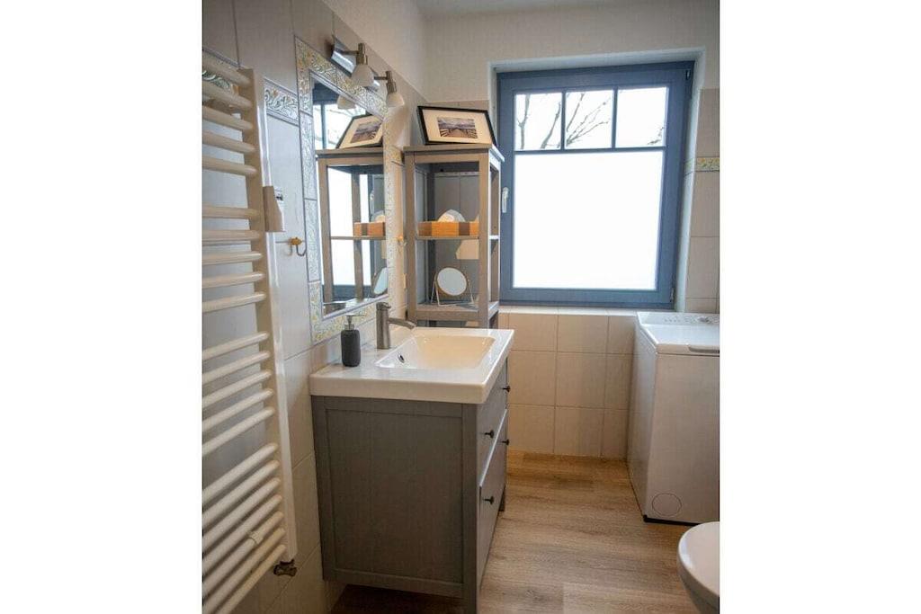 The 60 square meter holiday apartment is suitable for 4 people and was freshly painted in spring 2024. It has a modern bathroom, two cozy bedrooms, a spacious living and dining area and an inviting south-facing terrace. Benefit from the feeling of well-being in a completely renovated apartment in an attractive, homely style with new flooring, freshly painted walls and high-quality furniture. Check availability now. We wish you an unforgettable time in our holiday apartment in the Baltic Sea resort of Prerow.