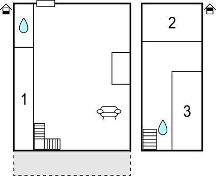 Badezimmer (nr. 1) - WC. Warmes und kaltes Wasser. Dusche