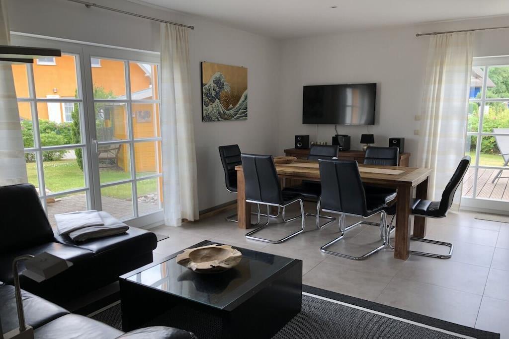 This exclusive holiday home features a natural thatched roof and offers over 100 m² of pure relaxation. Flooded with light, cozy, including underfloor heating and a fireplace... what more could you want :-) Furthermore, you'll find 2 bathrooms, 2 bedrooms, 2 terraces, and a thatched lounge area. You can safely store your bicycles in the garden house provided for your use. Just chill out for a day in the beautiful garden and enjoy the spacious beach chair... so much is possible! With the fiber optic connection from Telekom, you can even work on your projects from your home office on the Baltic Sea.