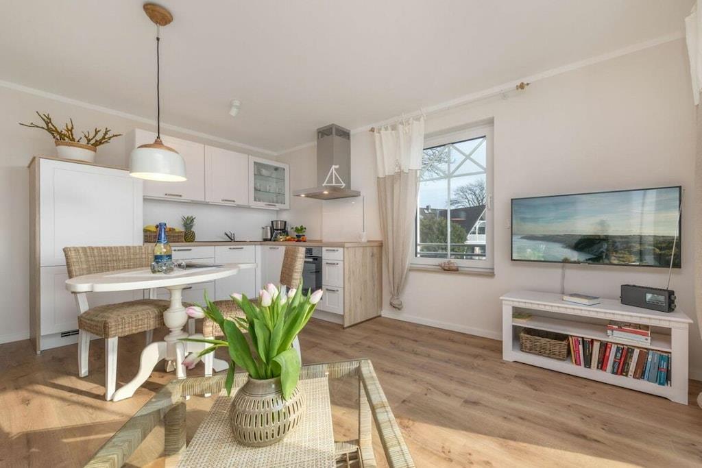 The apartment is modern, furnished with great attention to detail, and offers a high level of comfort. There's a fully equipped kitchen with everything you need, a cozy spot for reading and watching TV, and a bedroom with a large wardrobe and a high-quality 1.80 x 2.00 m box spring bed for a restful night's sleep. The bathroom features a window, a large walk-in shower, and a designer vanity. The east/south-facing balcony invites you to enjoy sunny breakfast. A bicycle shed and a numbered parking space are located on the property. This non-smoking apartment is pet-free.