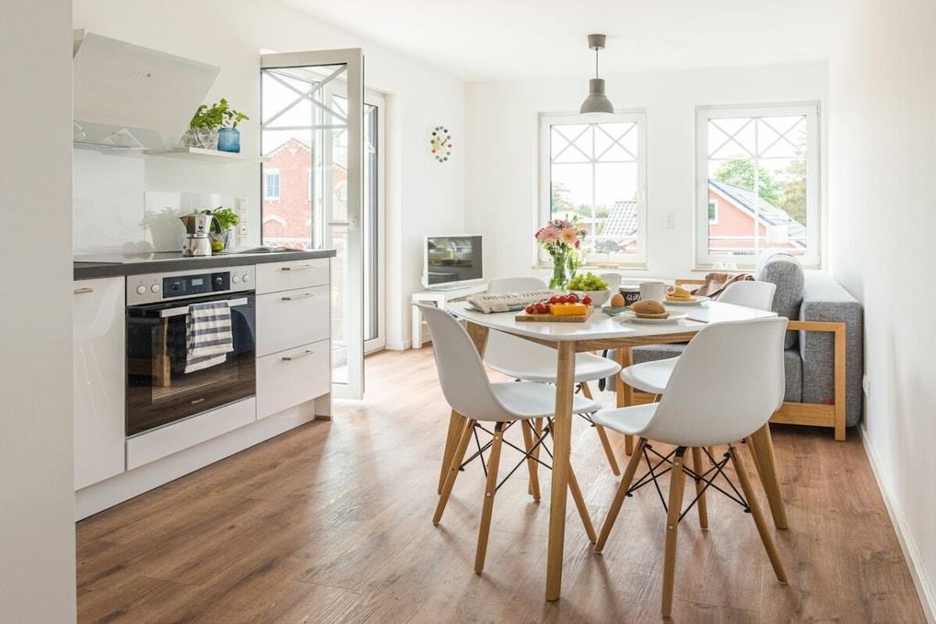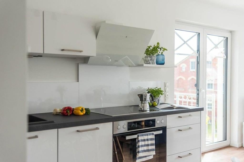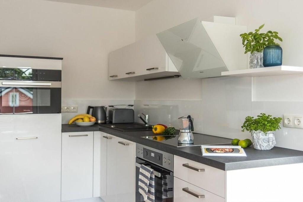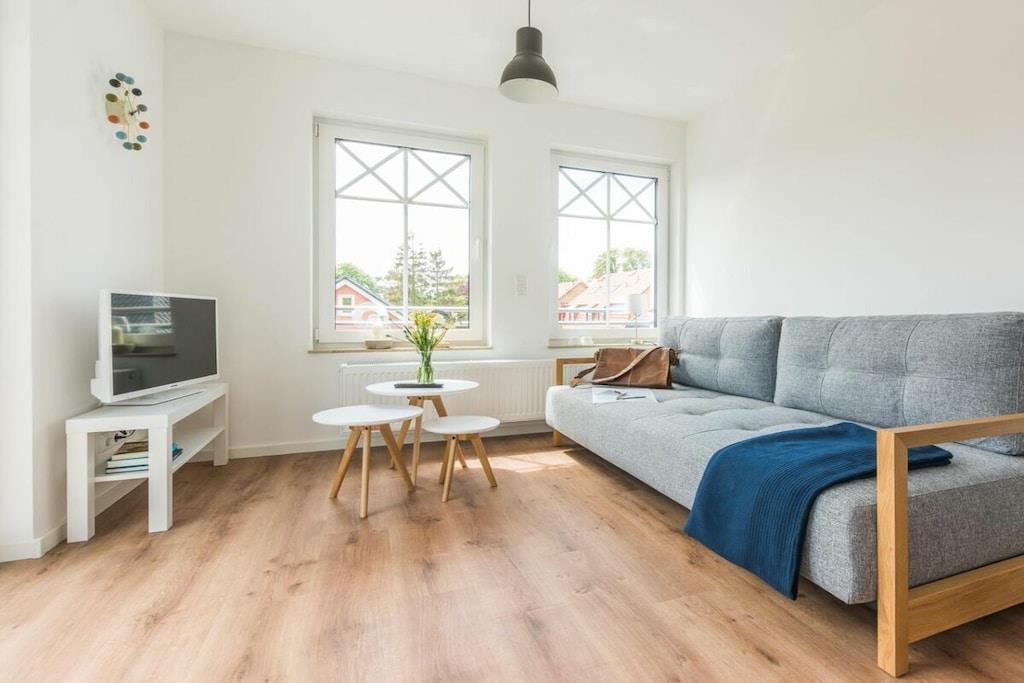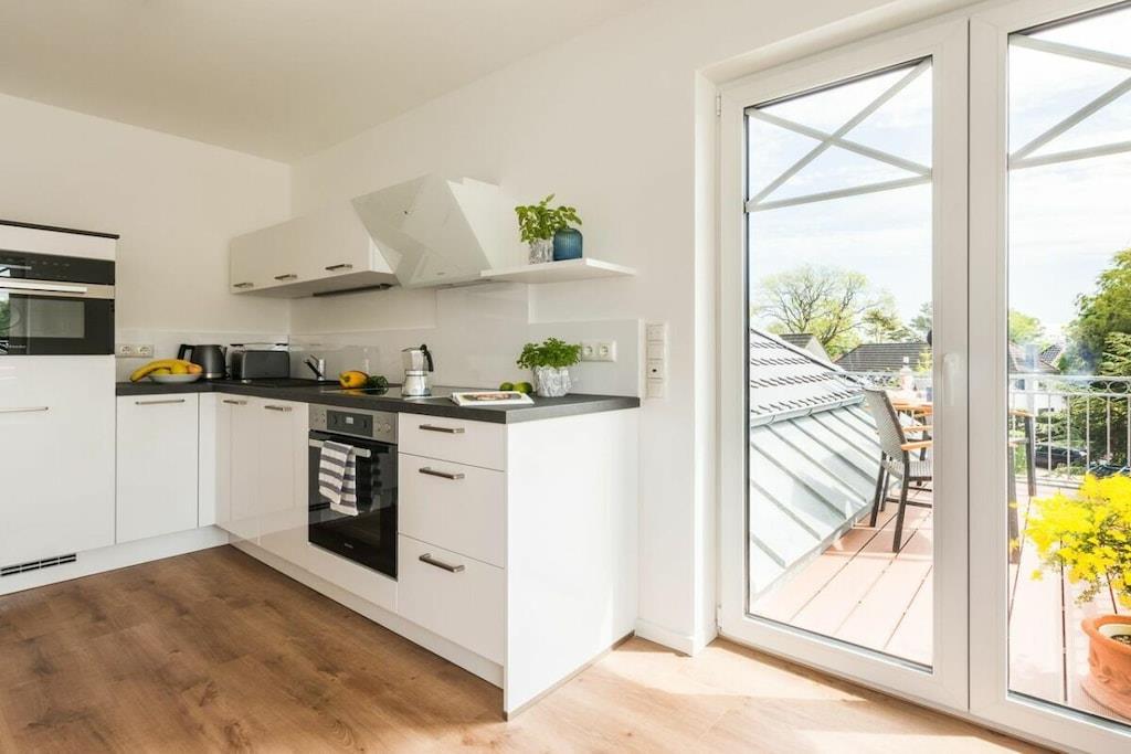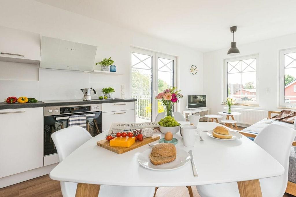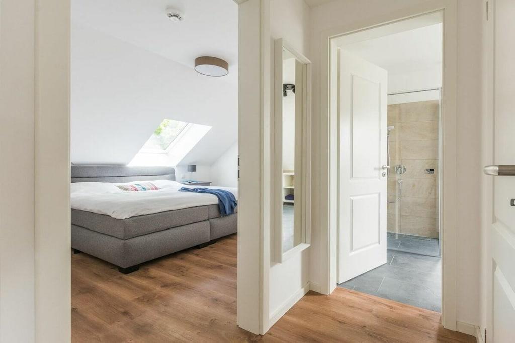 The apartment features a comfortable living area with a sofa and flat-screen TV, as well as a modern, open-plan kitchen. The sofa bed offers overnight accommodation for one to two additional guests. The bedroom has a modern box-spring bed (180 x 200 cm). Adjacent is a walk-in closet. The apartment's modern bathroom has a walk-in shower and a toilet. There's even a private washing machine. You can enjoy your morning coffee or an evening glass of wine on the beautiful balcony. A shed with charging facilities for e-bikes is also available. The Baltic Sea awaits you!