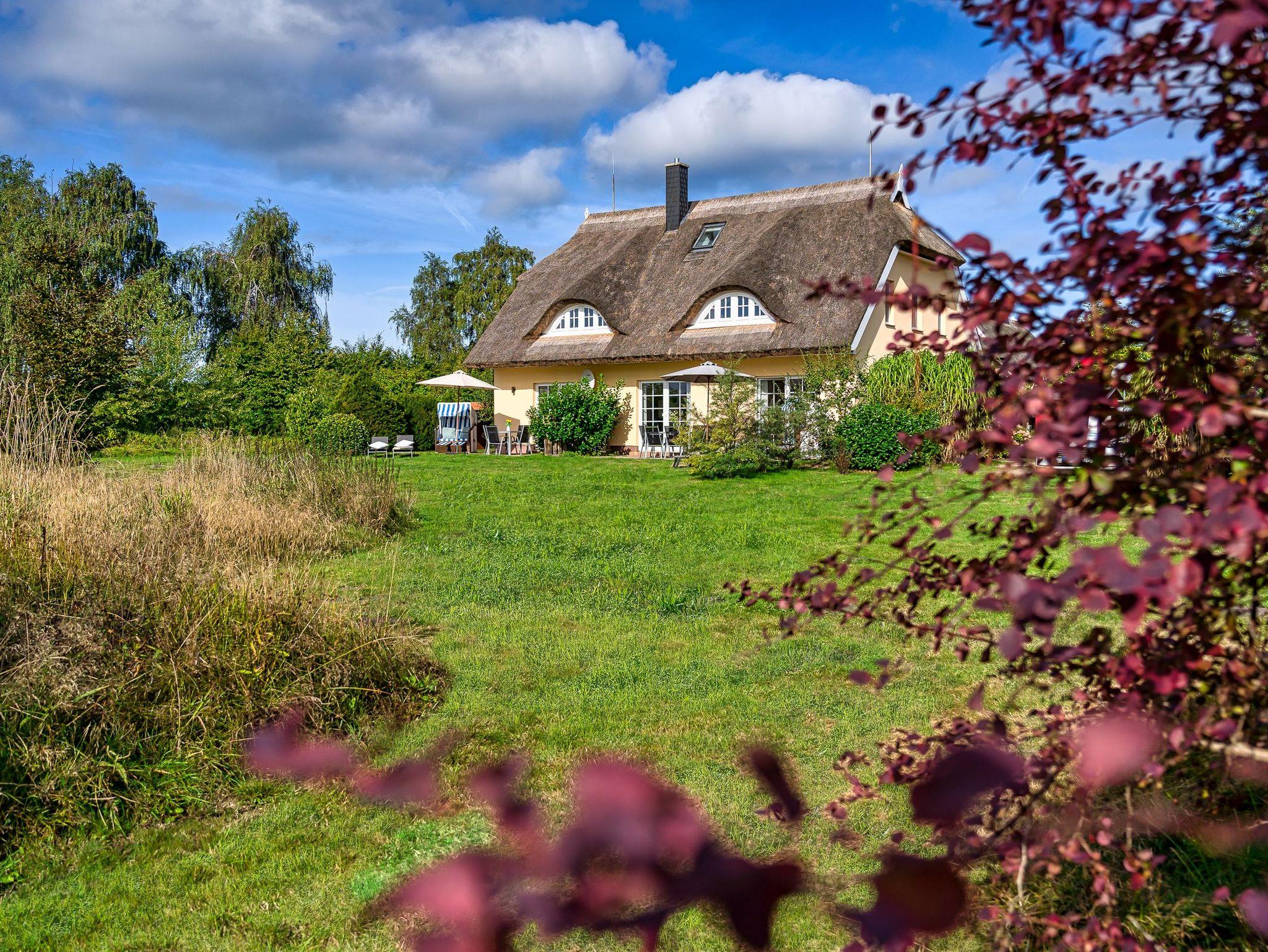 Terrasse (Süden) mit Gartenmöbel, Liegestühle (rollbar), Sonnenschirm, Strandkorb (Mai bis Oktober)