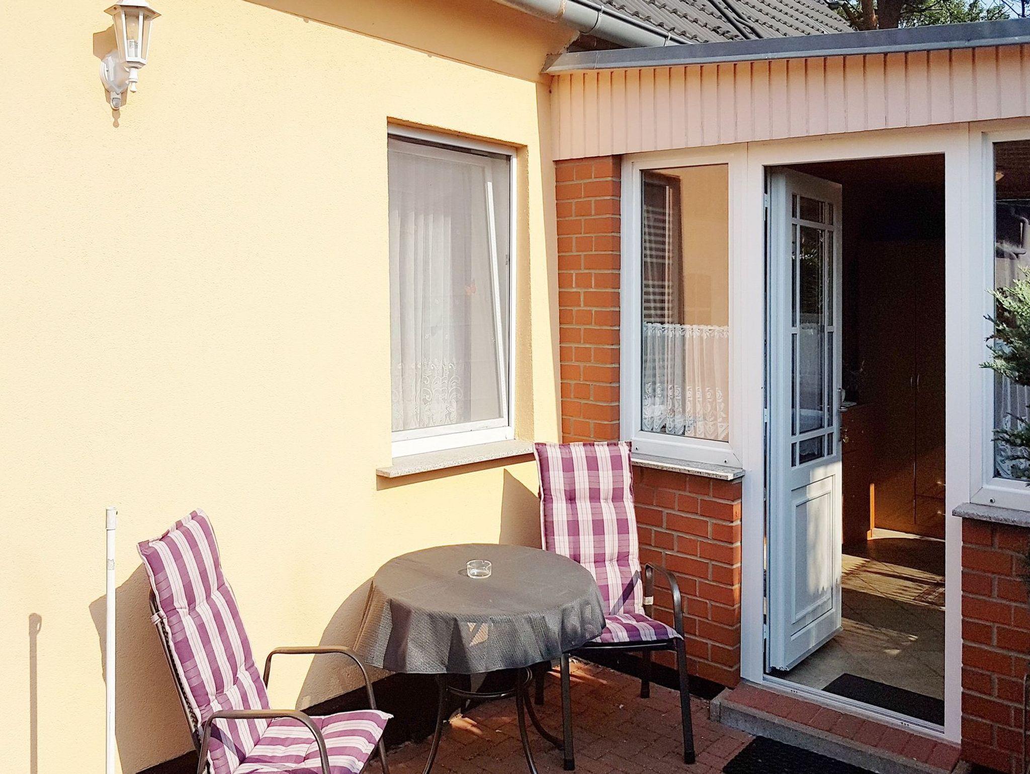 Die Ferienwohnung ist ebenerdig und hat einen separaten Eingang und eine Sitzecke vor dem Haus.