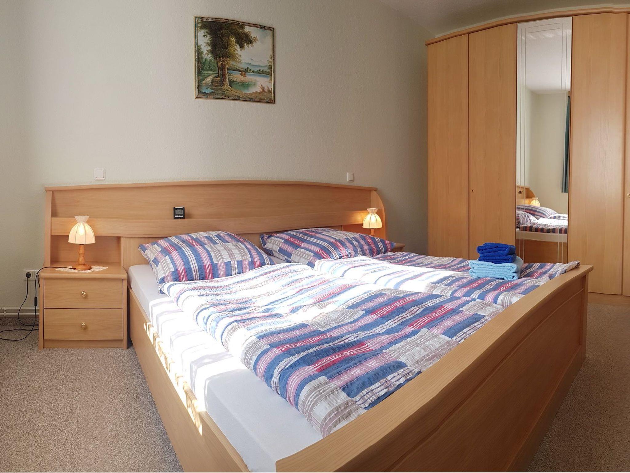 Geräumiges gut ausgestattetes Bad mit Dusche und WC. Schlafraum mit Doppelbett und großem Kleiderschrank. Ein kostenloser Parkplatz befindet sich vor dem Haus. Ein Grill kann ausgeliehen werden.