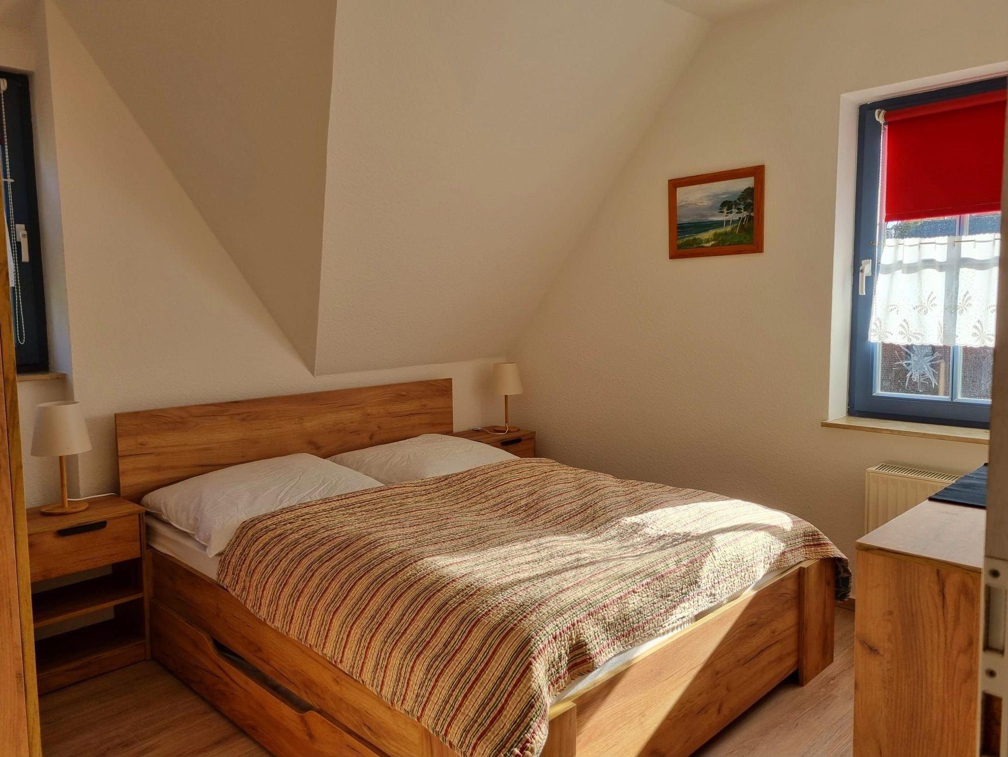 Ferienwohnung mit 3 Schlafzimmern auf 2 Etagen , Küchezeile, 2 Bäder, Balkon, 1-5 Pers., 1 Hund, W-Lan kostenfrei, PKW Stellplatz kostenfrei