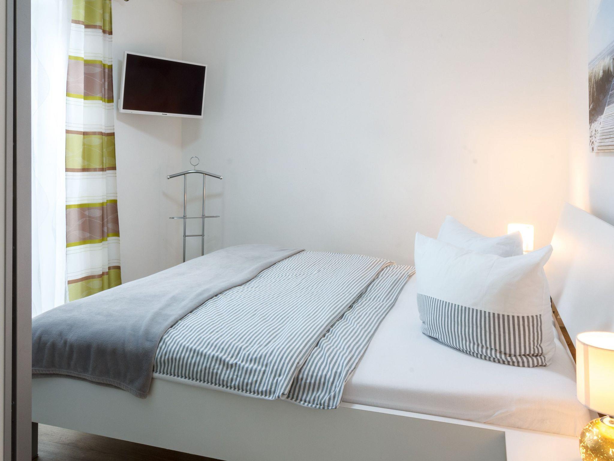 • Schlafzimmer: Gemütliches Doppelbett (180 x 200 cm) mit zusätzlichem Flachbild-TV