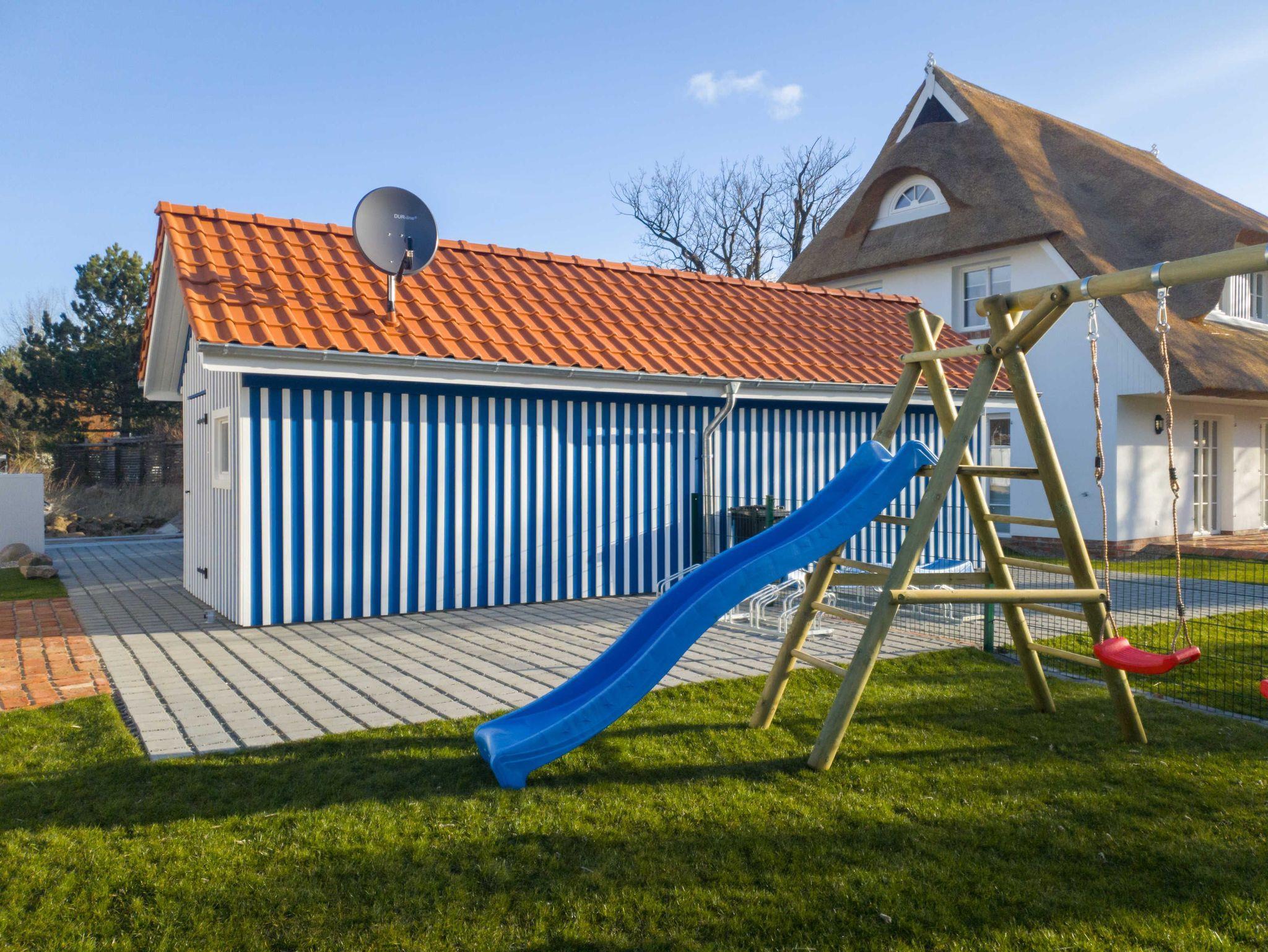 Das Fischerhus in Prerow bietet mit 137 m² Wohnfläche ausgesprochen viel Platz für bis zu 6 Gäste. Im Erdgeschoss erwartet Sie ein großer Raum mit Sitzecke, Esstisch und offener Landhausküche. Der Fußboden ist mit 100 Jahre alten Klinkern gefliest wie in den exklusiven Häusern in Kampen auf Sylt. Es wurden Holzsprossenfenster mit Fensterläden eingebaut. Das gesamte Haus wird mit einer Fußbodenheizung beheizt. Davon abgeteilt finden Sie im Eingangsbereich das WC mit einem Duschbad und den Wirtschaftsraum. Im Obergeschoß befinden sich 2 großzügige und gemütliche Schlafzimmer und das ansprechende und voll ausgestattete Bad sowie ein weiterer Abstellraum. Im Dachgeschoß befinden sich nochmal 2 Betten und eine Sitzecke mit einem 2 ten Fernseher. Die gut möblierte Terrasse mit Grill, Sonnenschirm und Liegen machen das Leben auch draußen zum Vergnügen. Das 630qm große Grundstück ist von der Terrassenseite nicht ensehbar. Im Haus befinden sich 2 große Fernseher mit einer Soundbar. Für die Kinder ist eine Schaukel mit Rutsche vorhanden. Das Grundstück ist eingezäunt, von der Staßenseite mit einer Friesenmauer bewachsen mit Sylter Rosen. Selbstverständlich gibt es Wlan.