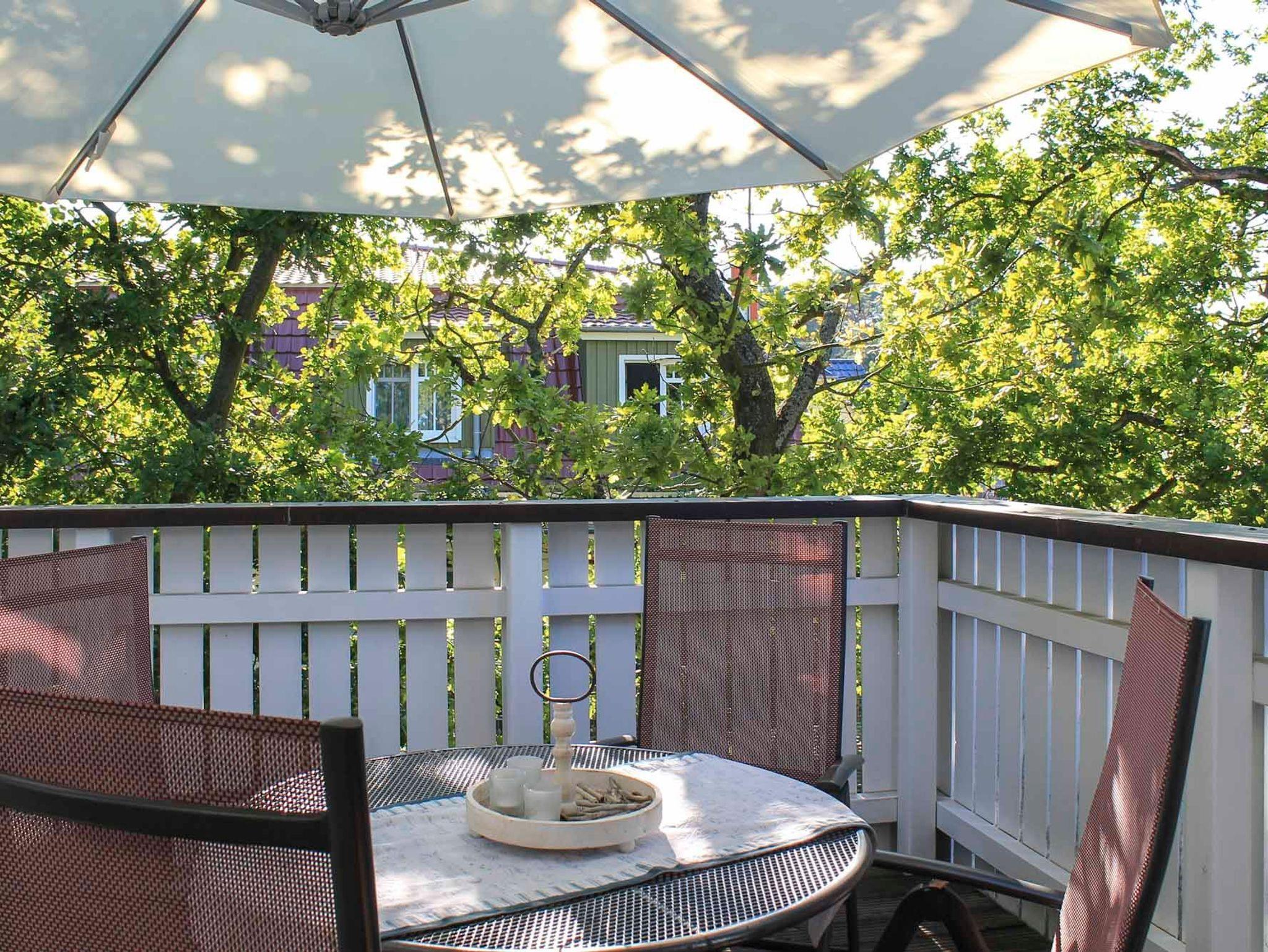 • Balkon: Eigener Balkon mit Gartenmöbeln und Sonnenschirm