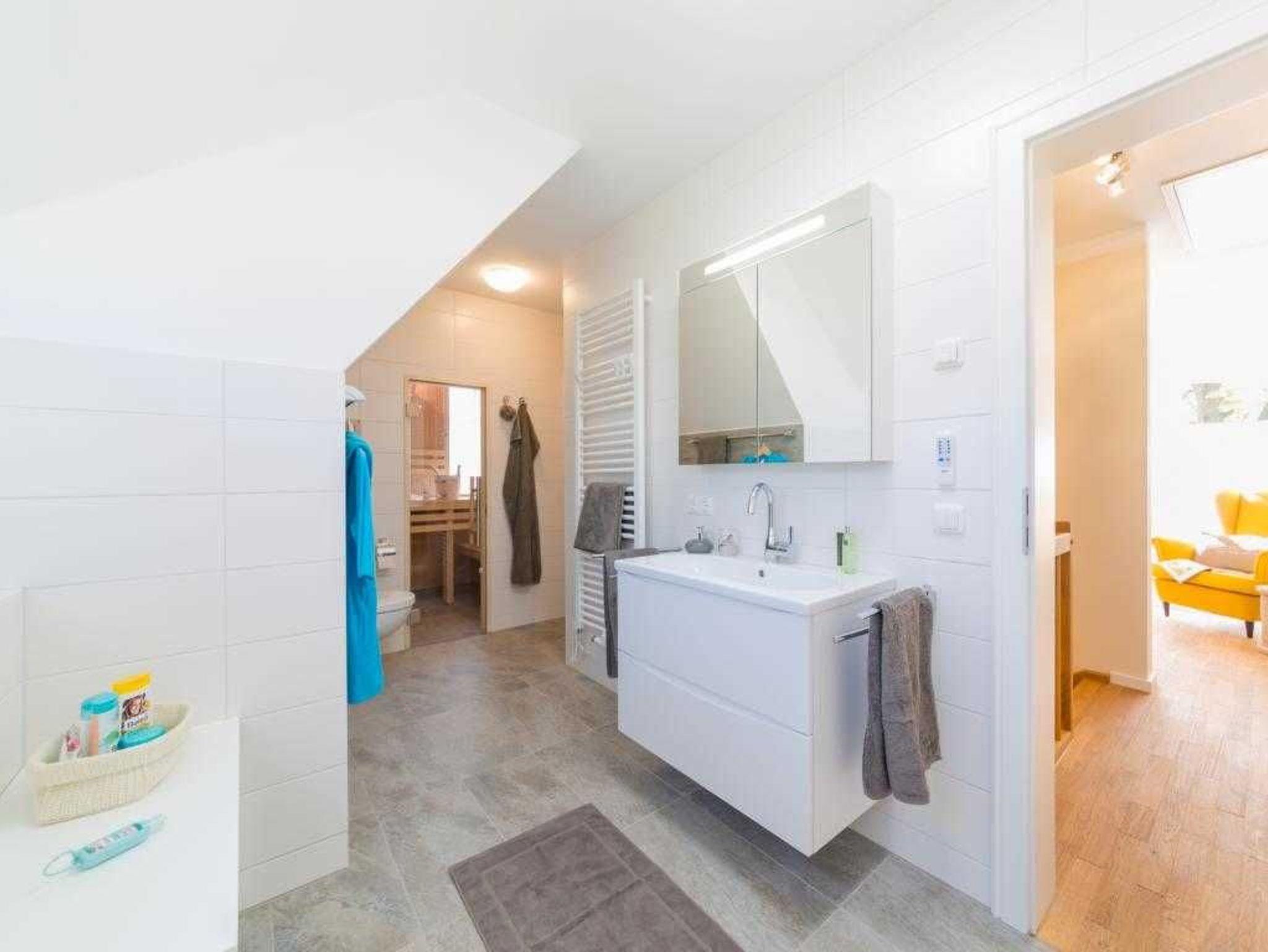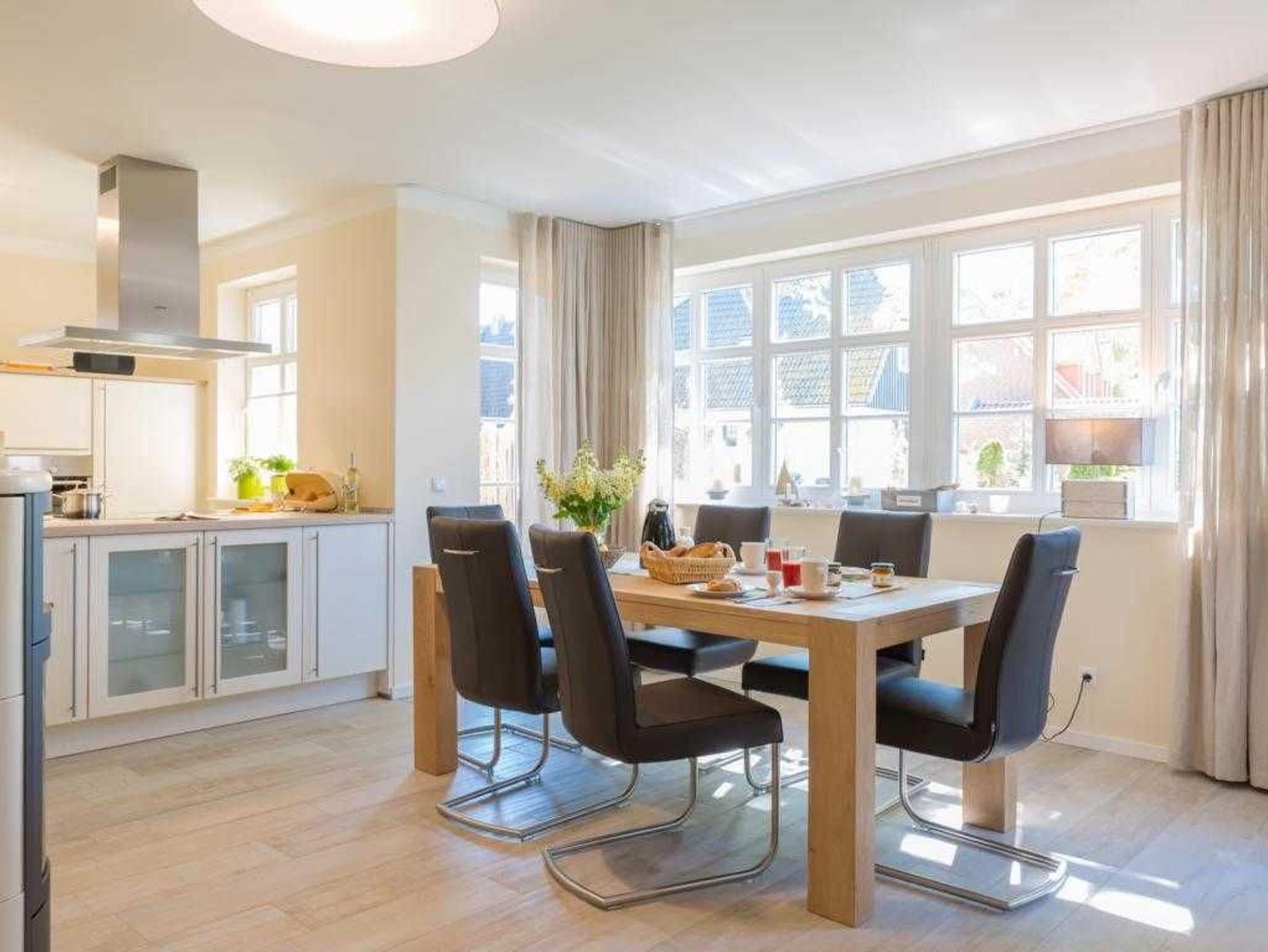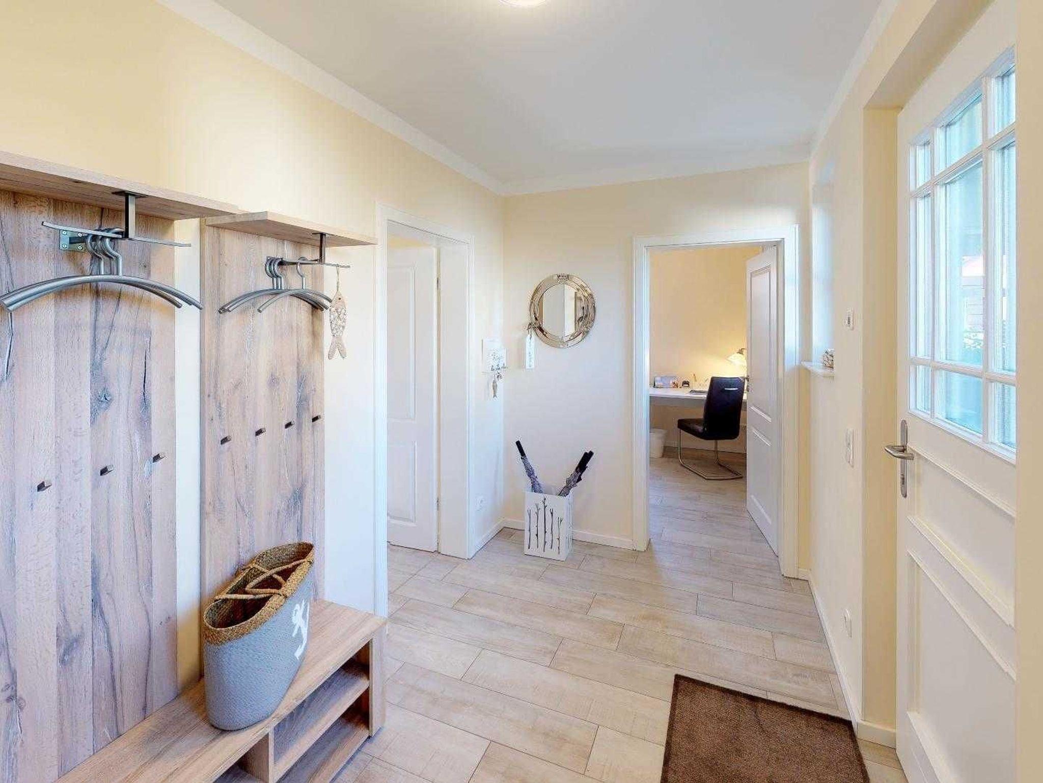 Allgemein:Einfamilienhaus, 124 qm Wohnfläche, 5 Zimmer, 4 Schlafzimmer, 2 Bäder, 405 qm Grundstück eingezäunt, Gasbrennwerttherme, Solare Warmwasserbereitung, Fußbodenheizung in allen Räumen, Kaminofen, Sauna, Waschmaschine, Trockner, 2 PKW Stellplätze, Gartenhaus, 37 qm Terrasse (Südausrichtung), Internet, Sat-TV, Darßtypische Architektur mit Fledermausgaube, Darßveranda, Süd-Balkon.