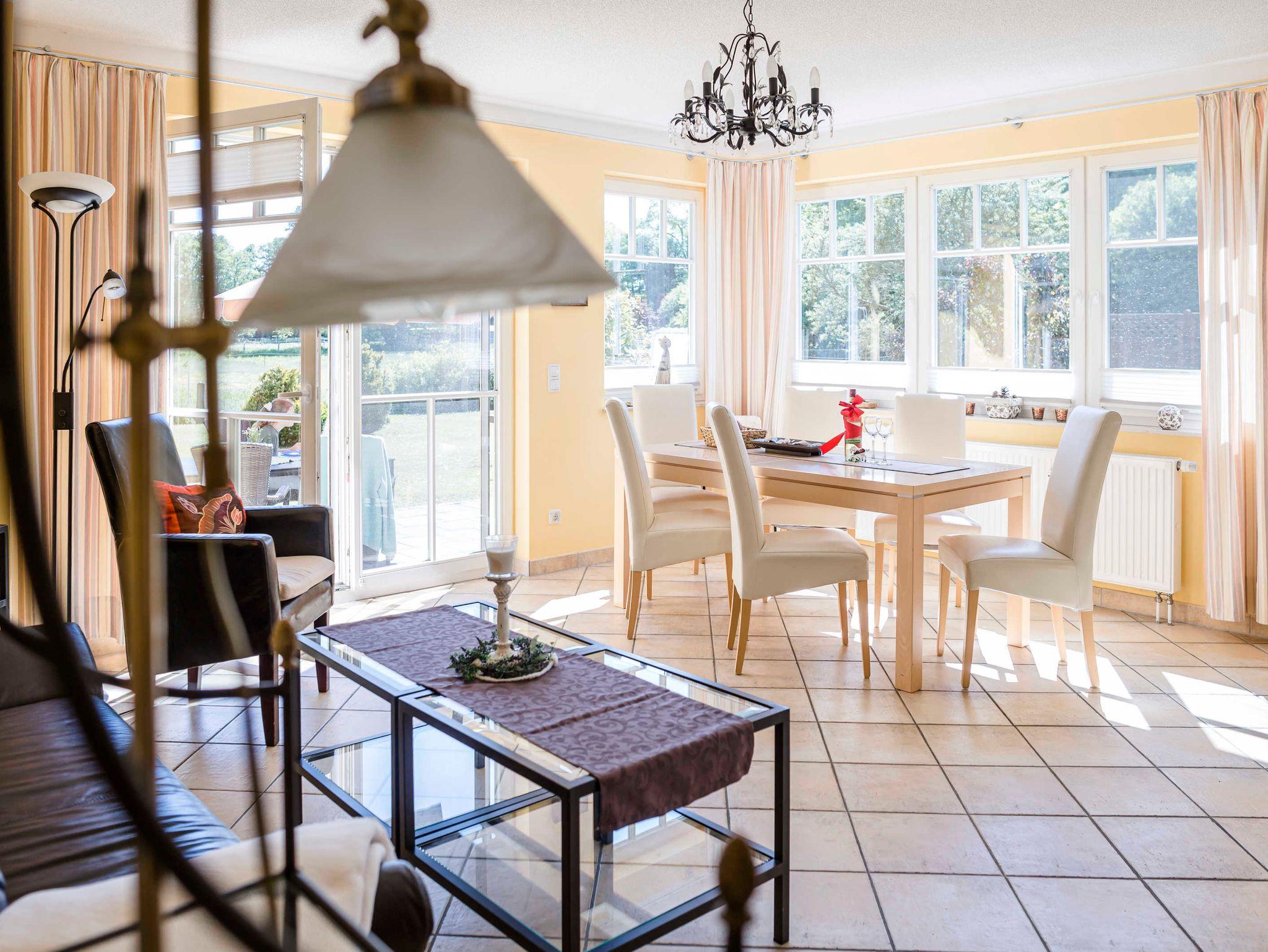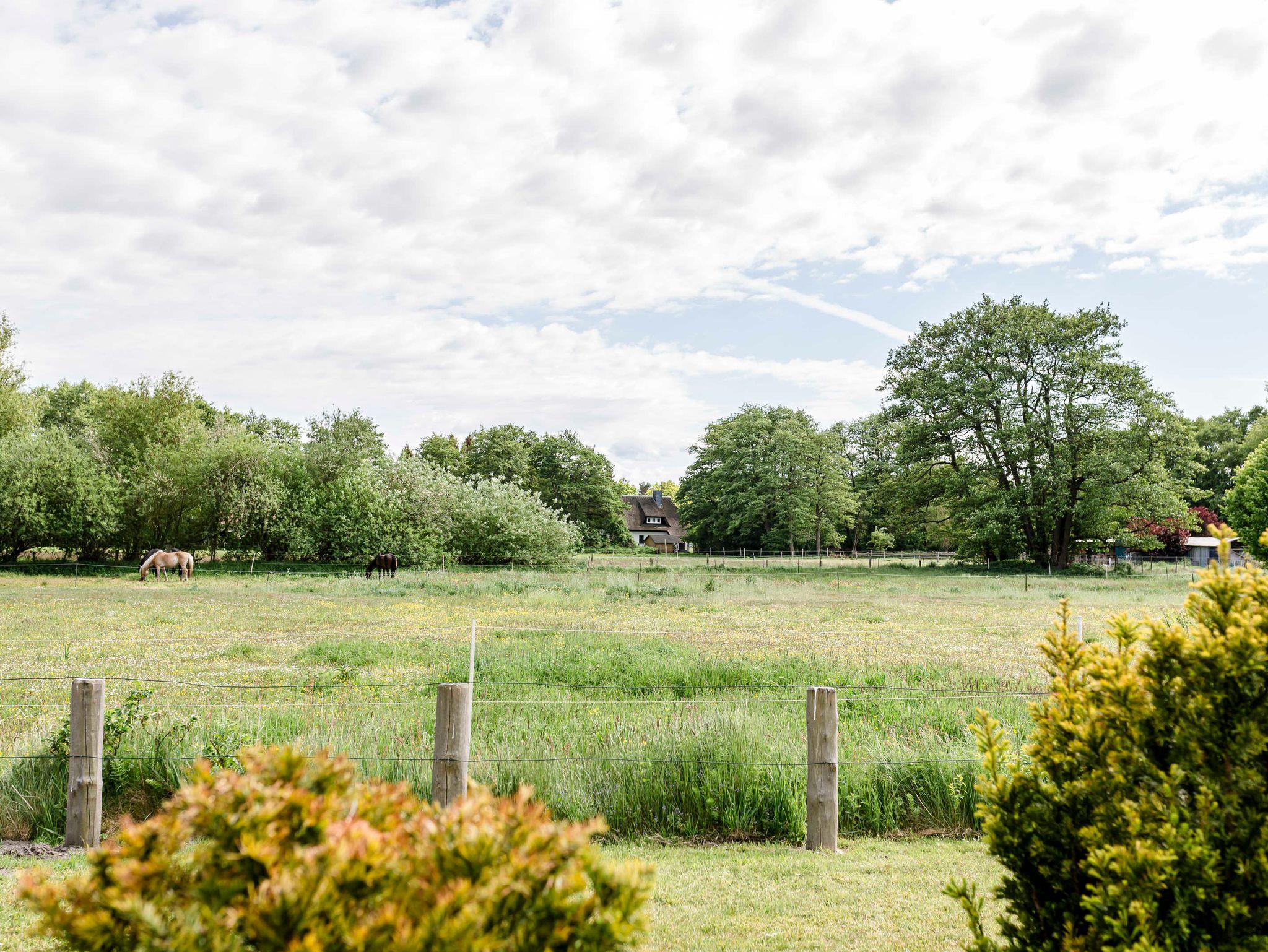Mitten in einem großzügigen, grünen Umfeld mit unverbauter Südseite liegt unsere schöne Ferienwohnung Am Stemsbach in einem Landhaus. Von der Terrasse geht der unverbaute Blick auf die Pferdekoppel mitten im Naturschutzgebiet. Das Haus ist im Original Ostseestil gebaut, Reetdach und die für die Region typischen und einmaligen Fischertüren, bieten bereits von außen einen wunderschönen Anblick.